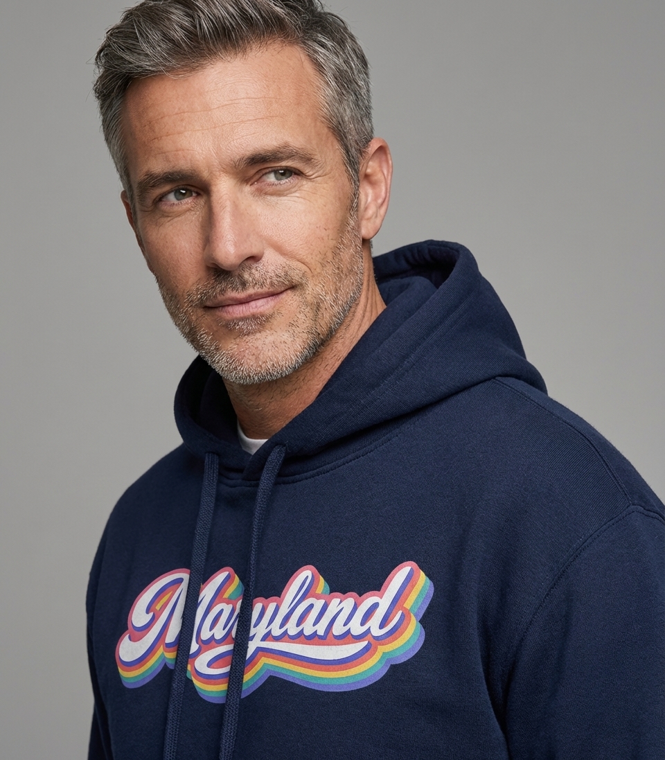 Yes! Check the style selector above to see all available options including hoodies and sweatshirts for the Retro Maryland Rainbow graphic.