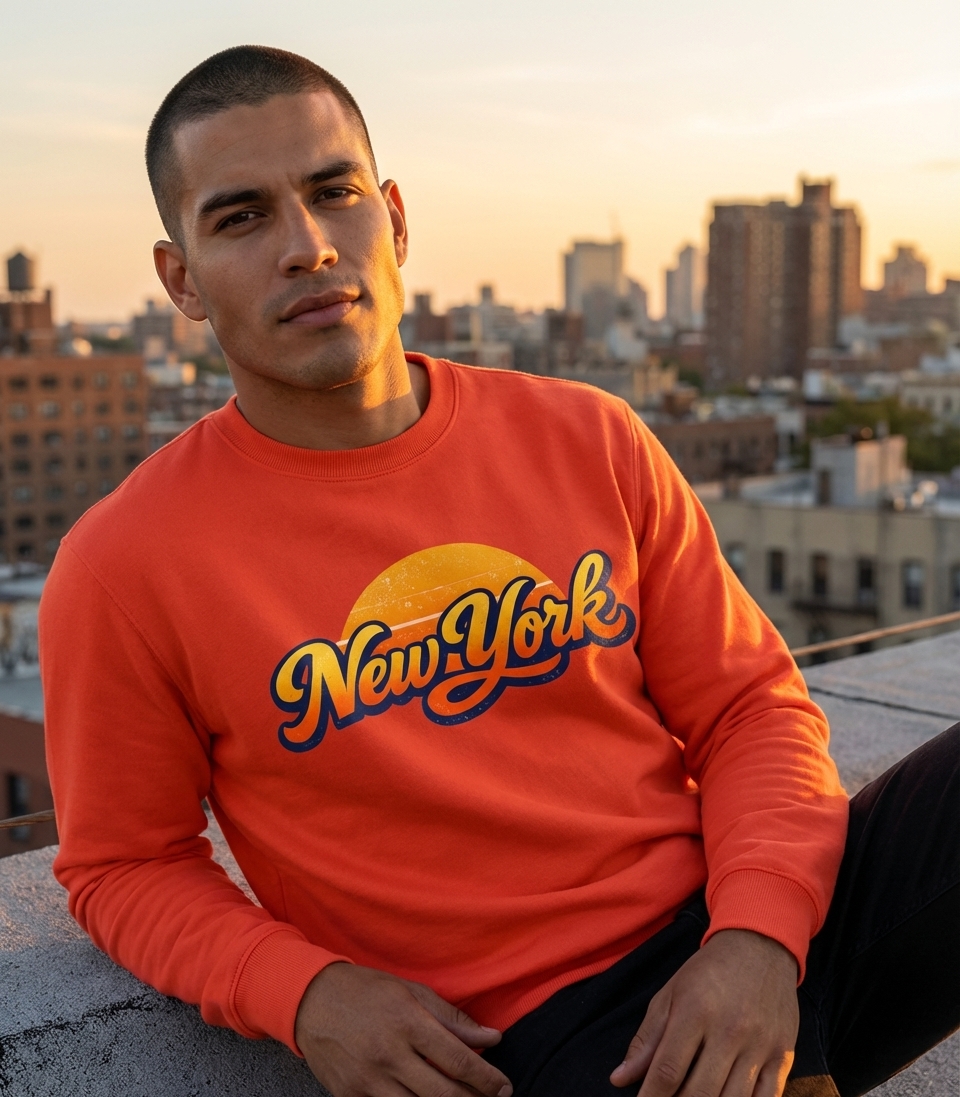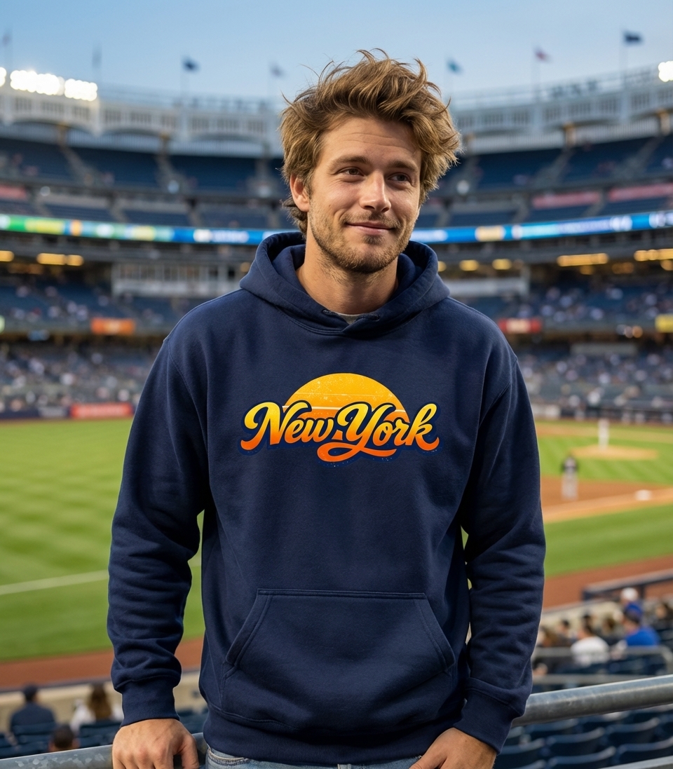 Yes! Check the style selector above to see all available options including hoodies and sweatshirts for the Retro New York Sunset graphic.