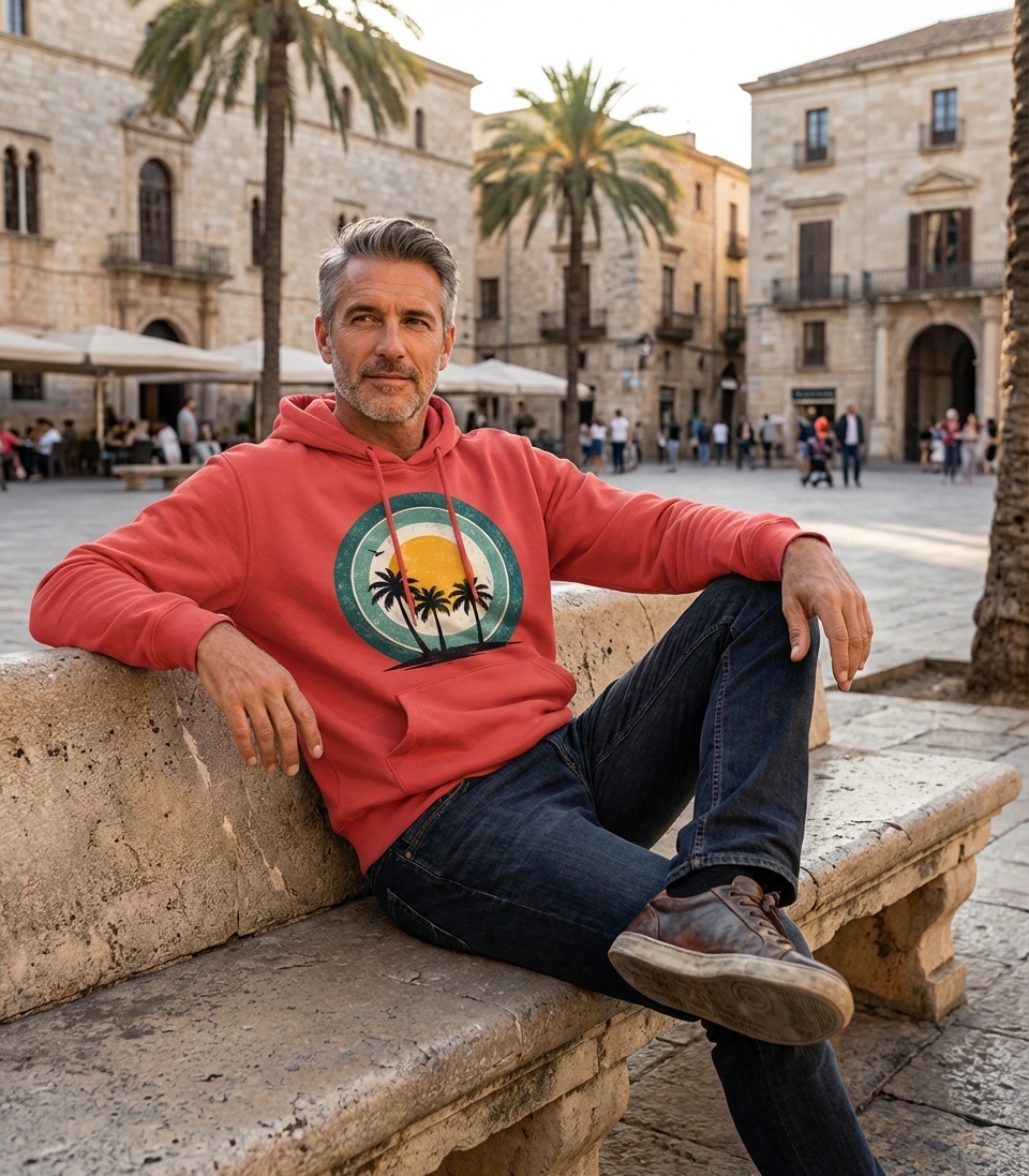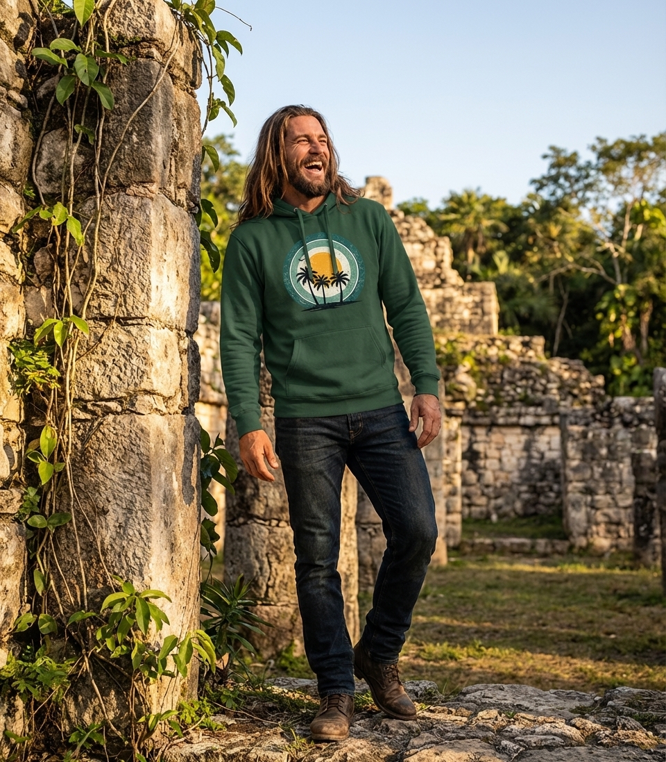 This retro palm sunset design captures the laid-back lifestyle of passionate travelers who dream of island getaways, relaxing on the beach, and enjoying warm tropical evenings.