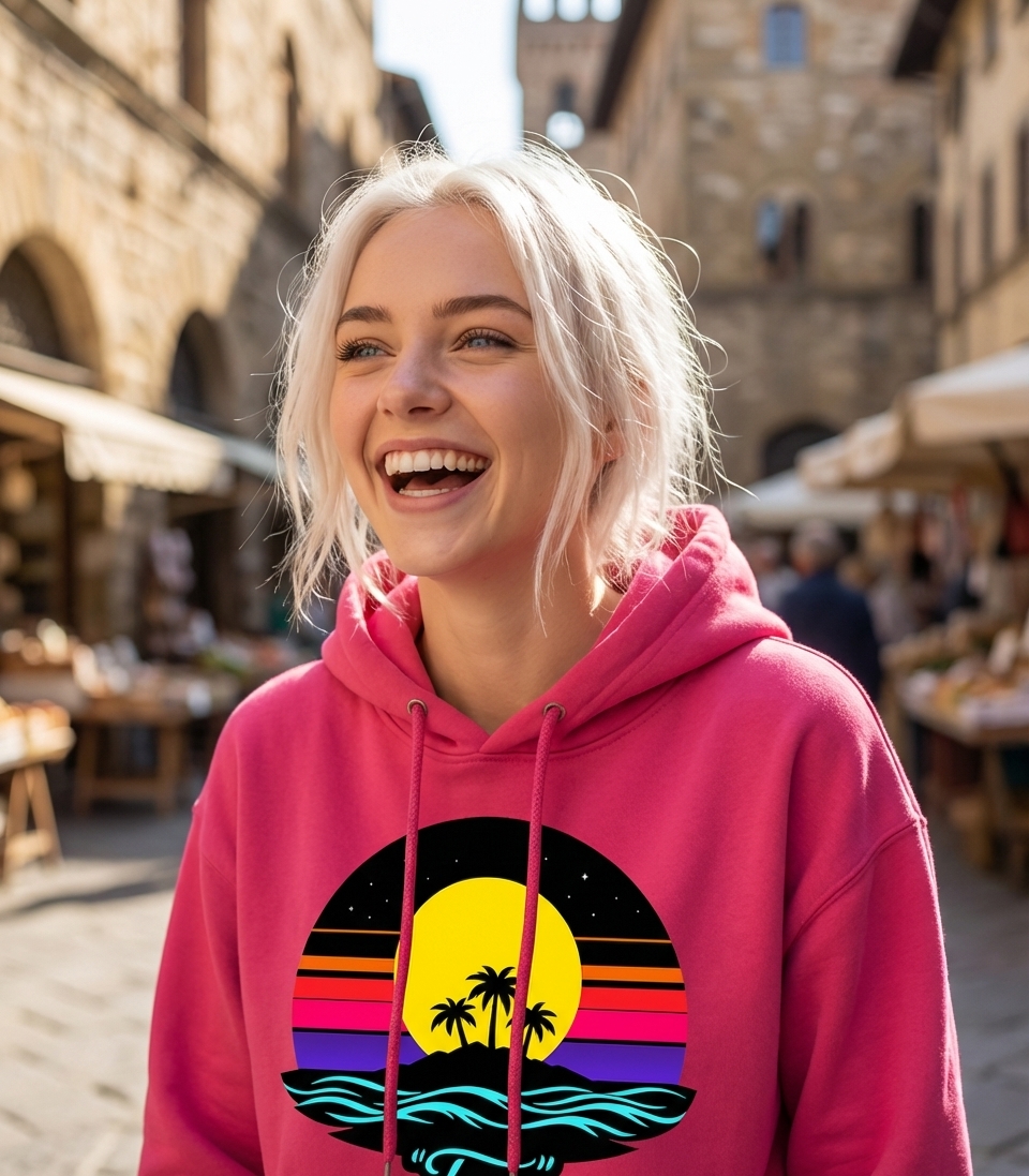 Yes! Check the style selector above to see all available options including hoodies and sweatshirts for the Retro Sunset Island graphic.