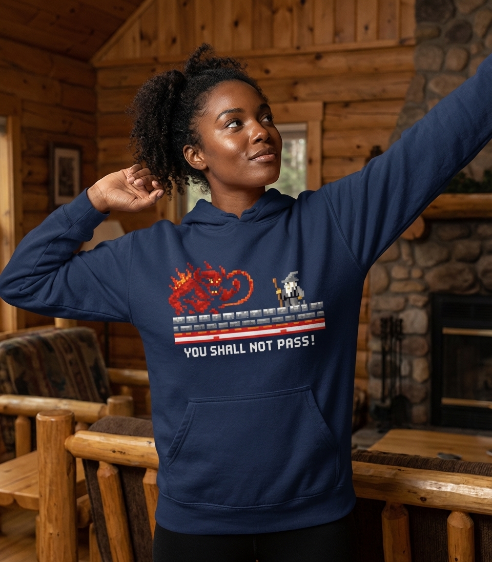 The "You Shall Not Pass" phrase captures the lifestyle of passionate fantasy and retro gaming enthusiasts who relive epic cinematic moments, appreciate vintage game aesthetics, and celebrate classic pop culture showdowns.