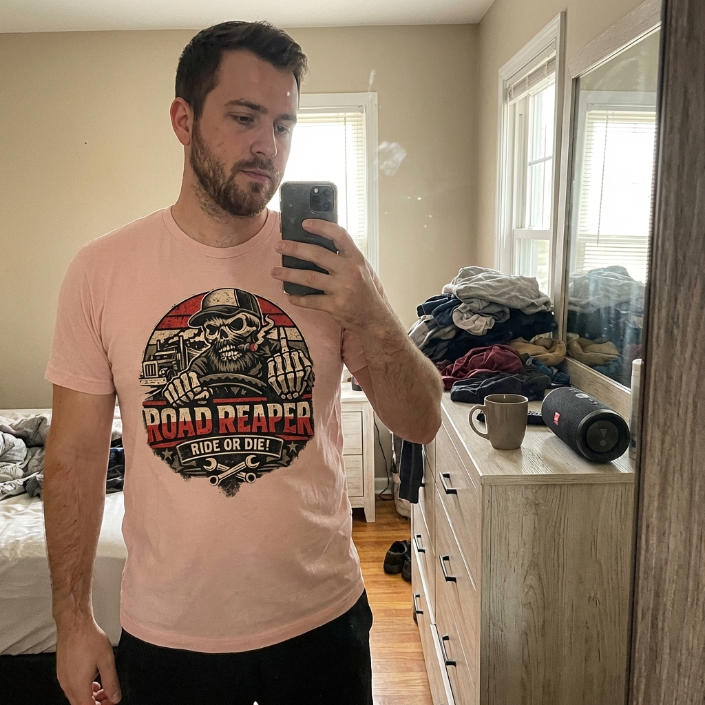okay, so this road reaper tee? it's actually really awesome, way better than i expected. print quality is super crisp and the shirt itself feels premium, totally digging the whole vibe.