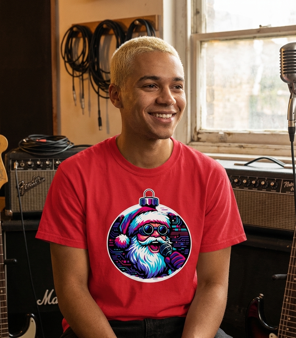 The core idea represents a fusion of traditional holiday cheer with contemporary music and tech culture. It’s about celebrating Christmas with a fresh, energetic, and slightly rebellious twist. This Santa brings a festive performance to the digital age.
