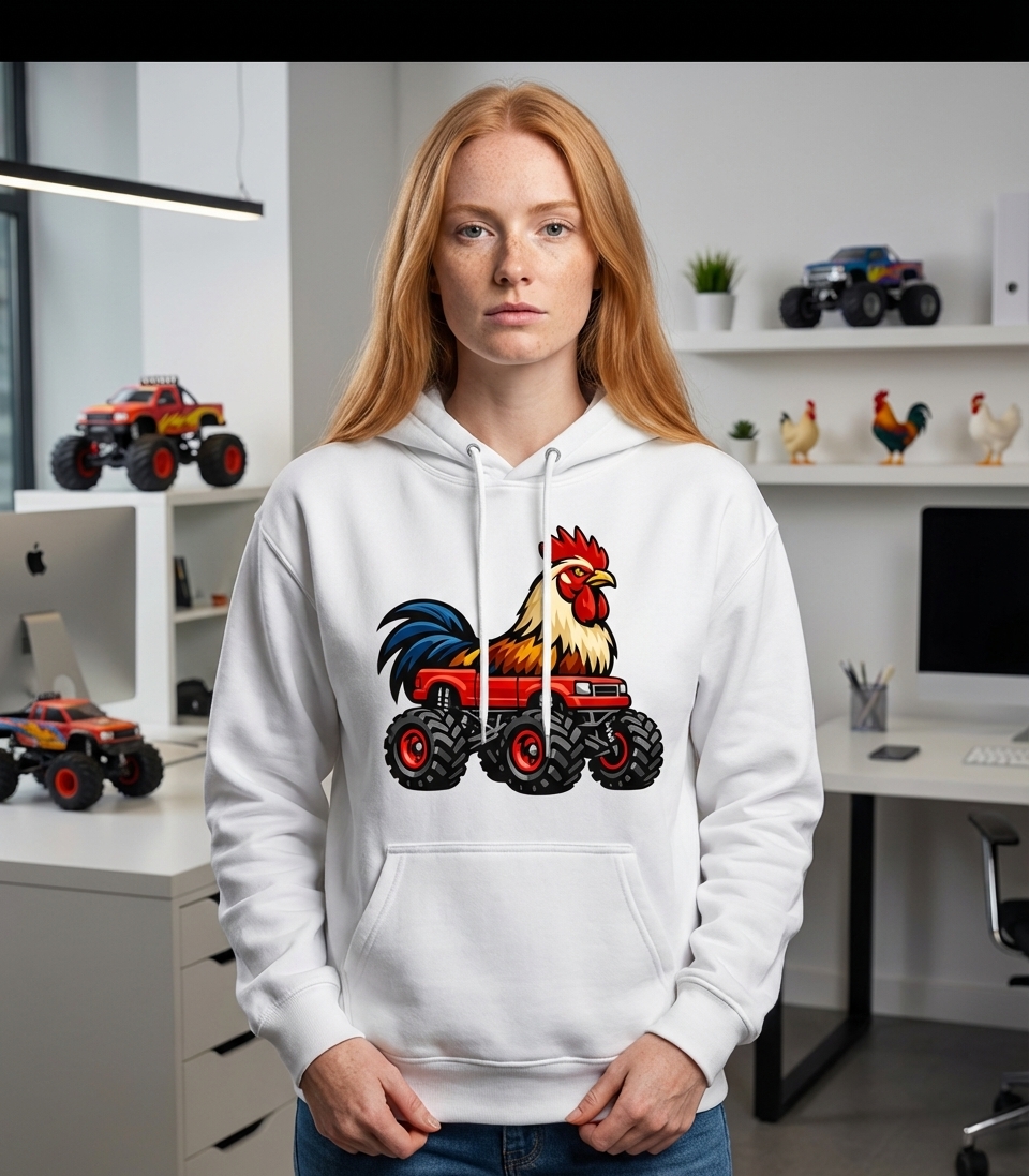 Yes! Check the style selector above to see all available options including hoodies and sweatshirts for the Rooster Monster Truck graphic.
