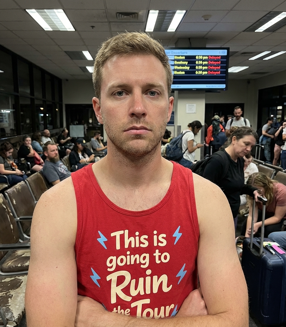 The "Ruin The Tour" phrase captures the lifestyle of passionate music and travel enthusiasts who face unexpected mishaps on their adventures.