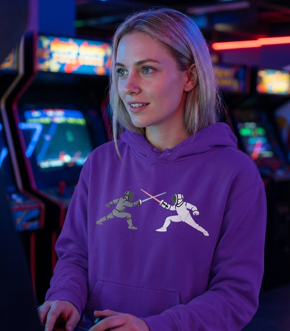 The Lightsaber Fencing Duel design captures the unique fusion lifestyle of passionate fans who enjoy sci-fi sagas, precision swordplay, and epic combat.