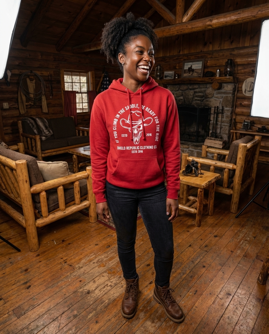 The "If you climb in the saddle, be ready for the ride" phrase captures the lifestyle of adventurous individuals who are ready for any challenge, embrace the Western spirit, and live life with a daring attitude.