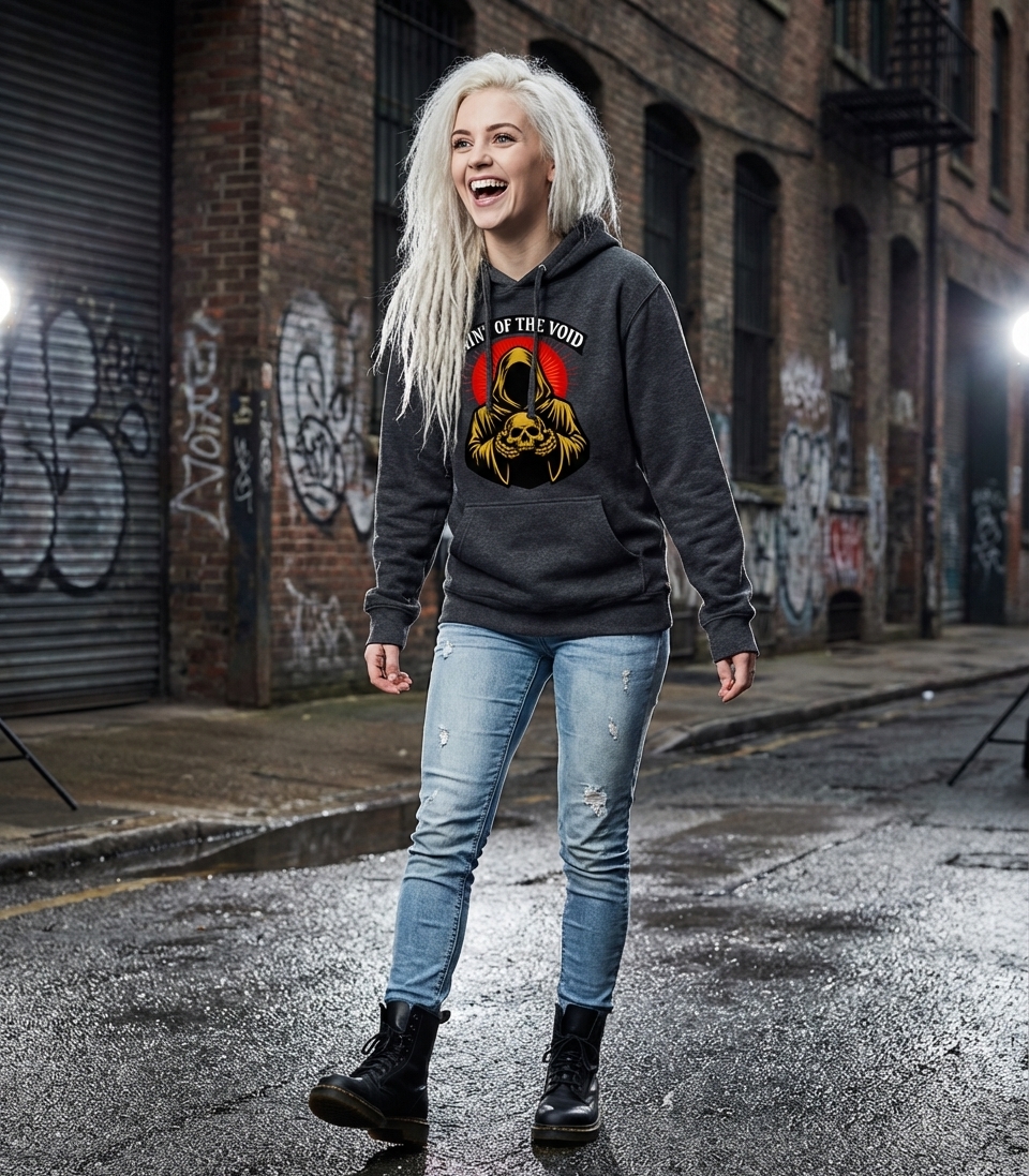 "Saint of the Void" reinterprets the concept of a saint, placing it within a realm of emptiness, non-existence, or profound philosophical contemplation. It speaks to those who might find meaning in nihilism, appreciate the darker aspects of existence, or embrace a non-traditional spiritual path.