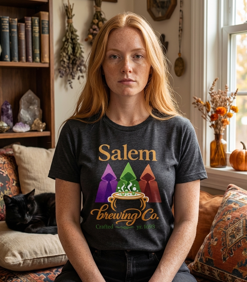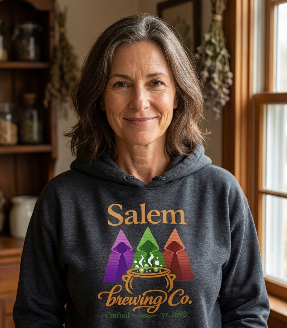 "Salem Brewing Co." represents a creative blend of historical intrigue and modern brewing passion. The phrase evokes a sense of ancient, secret recipes and the mystical origins of a craft, inviting wearers to embrace both history and fantasy. It subtly hints at the potent and mysterious nature of the beverages crafted by these enigmatic figures.