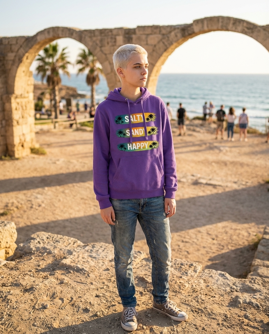 The 'Salty Sandy Happy' phrase captures the vibrant lifestyle of passionate beach enthusiasts who love to bask in the sun, feel the sand, and embrace pure joy.