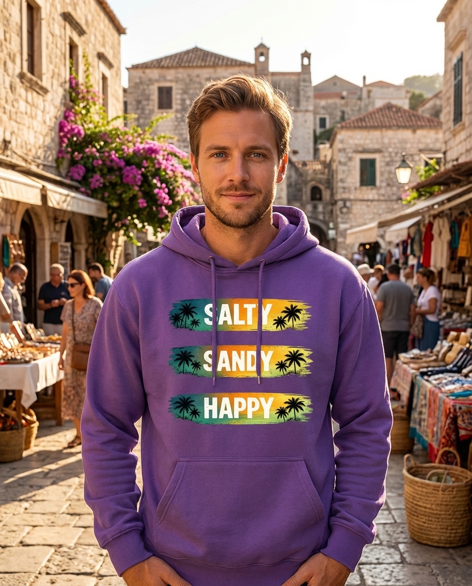 The phrase "Salty Sandy Happy" perfectly encapsulates the delightful feeling of a perfect beach day. "Salty" refers to the ocean air and water, "Sandy" to the warm shores, and "Happy" to the pure joy and relaxation found by the sea.