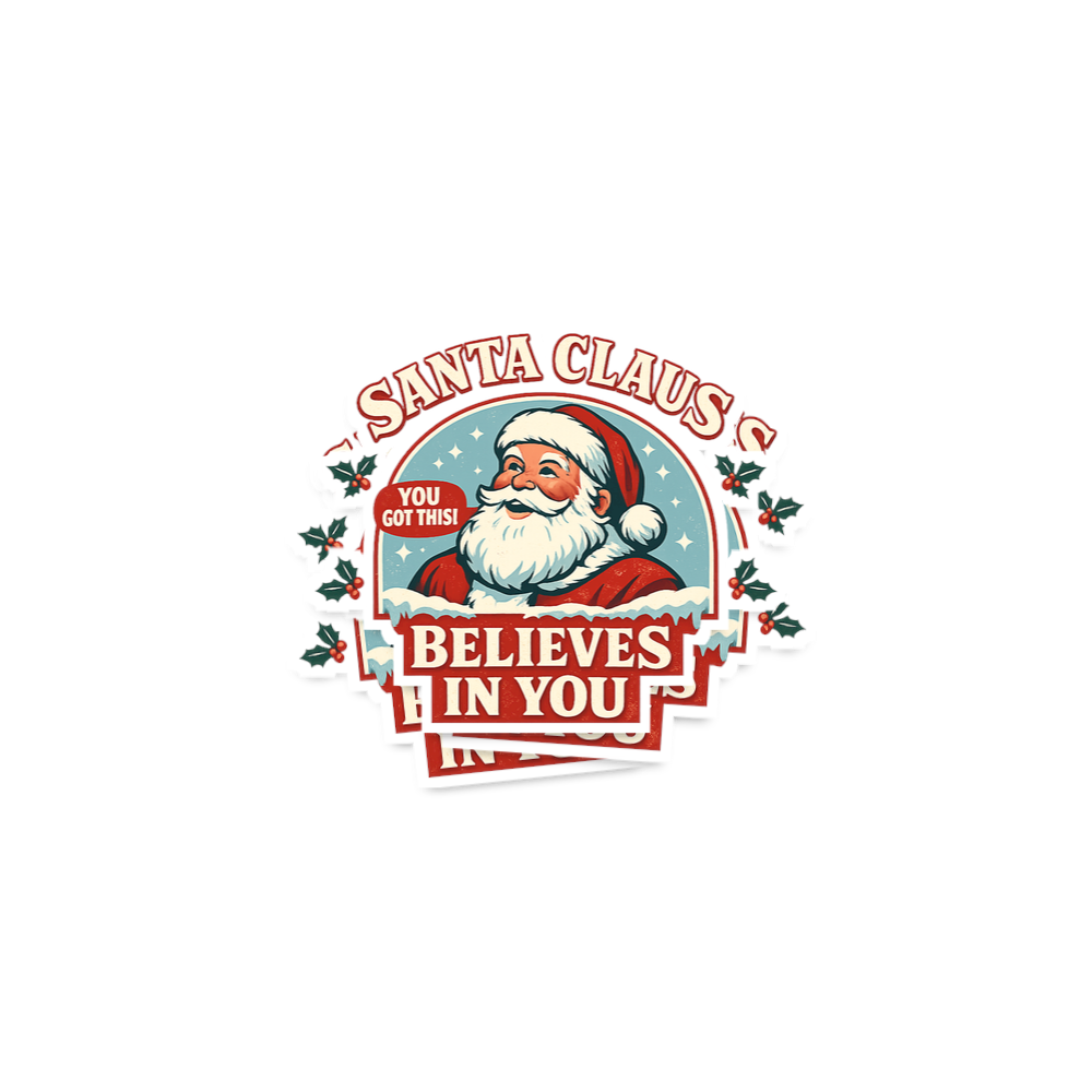 The phrase "Santa Believes In You" captures the spirit of cheerful encouragement for anyone facing challenges, spreading hope and self-confidence.