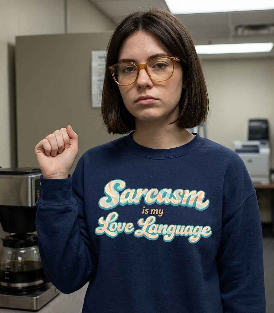 The "Sarcasm is my Love Language" phrase captures the lifestyle of witty individuals who communicate affection through sharp jokes, clever comebacks, and playful teasing.