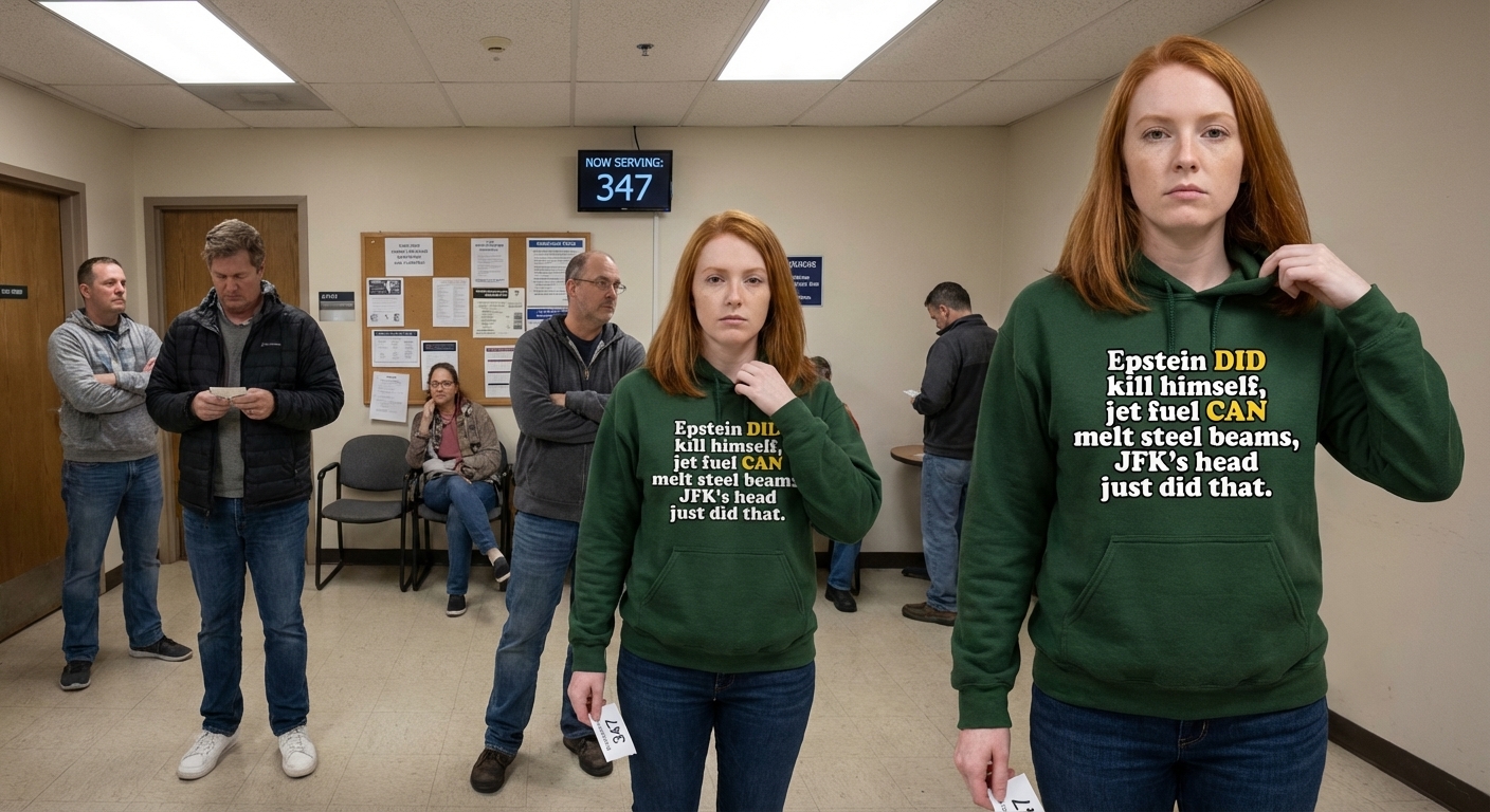 This design presents a bold and unapologetic statement, using sarcasm to address widely discussed conspiracy theories and controversial historical interpretations. The text combines references to well-known public events, twisting their official narratives with an ironic tone. It is a visual representation of alternative viewpoints and a challenge to conventional explanations.