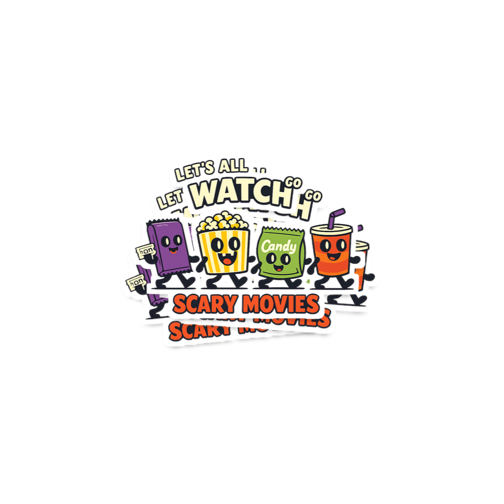 The core phrase celebrates the beloved tradition of watching scary movies, often a cornerstone of cozy nights in or seasonal festivities. It evokes the joy of shared frights and the comfort of accompanying treats.