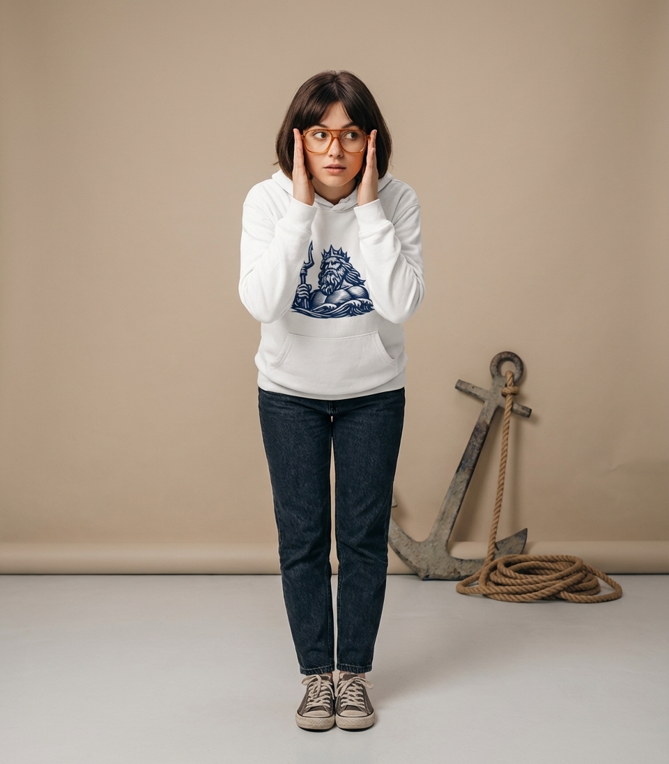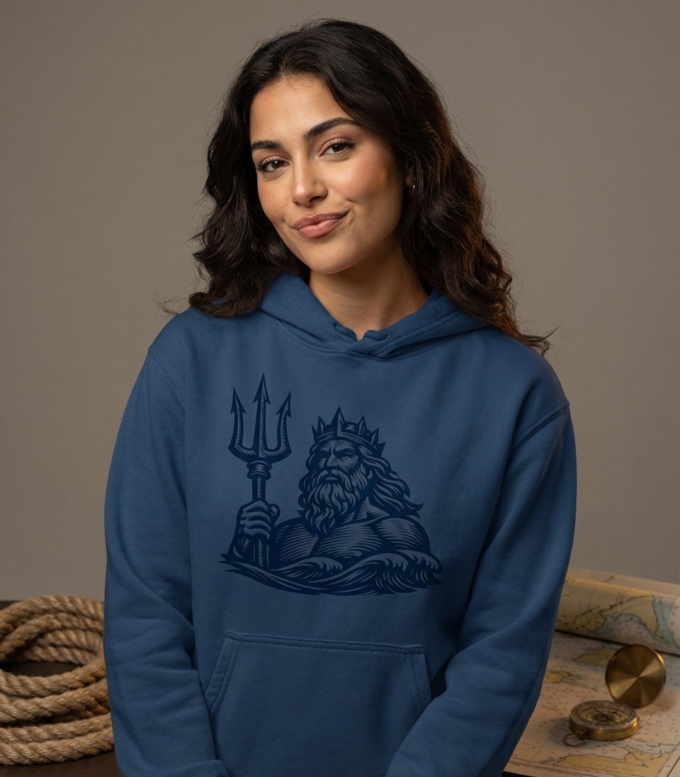 The image itself acts as a symbol of power, control over the ocean, and a deep connection to maritime lore. It represents the untamed forces of nature and the timeless tales of gods ruling the seas.