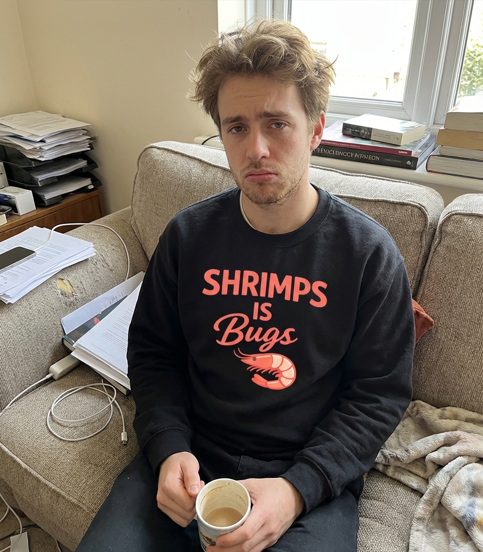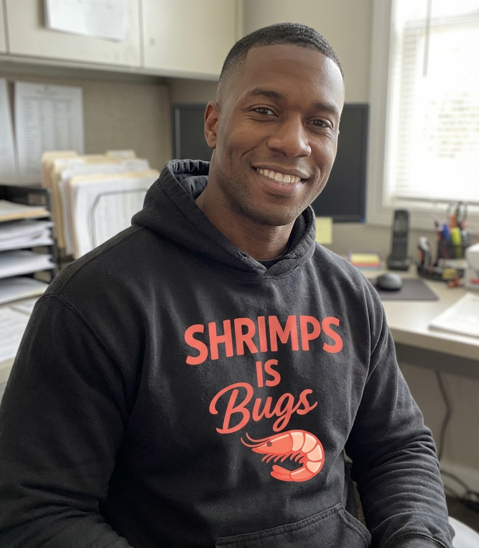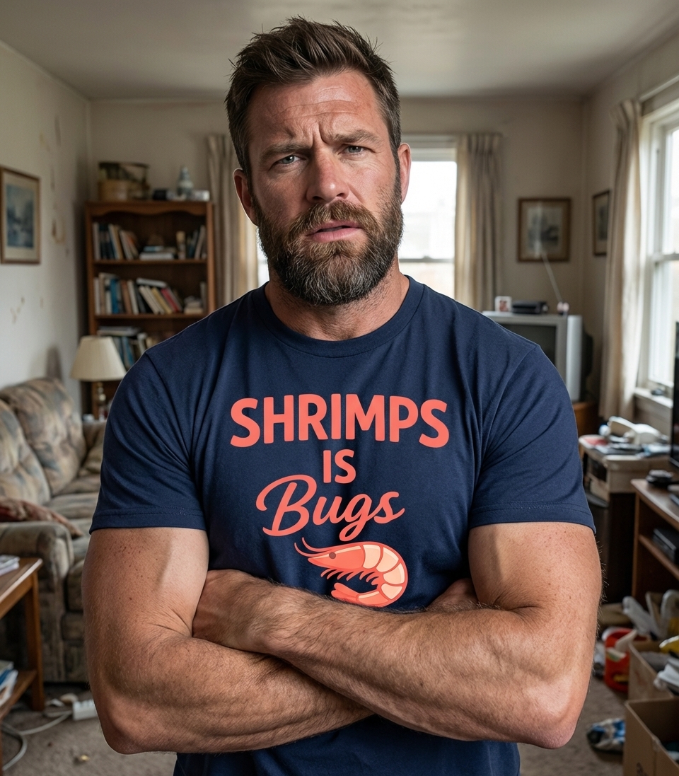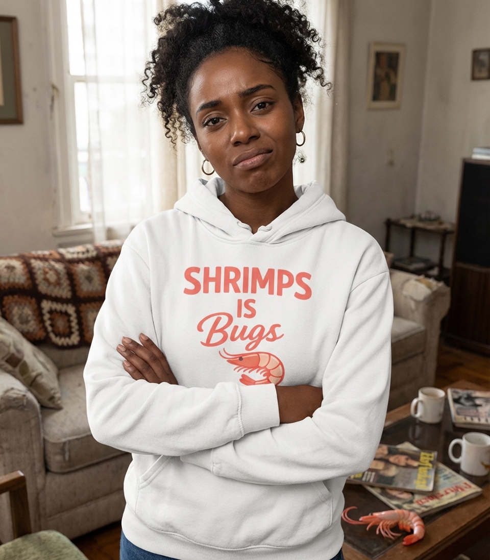 The "Shrimps Is Bugs" phrase captures the lifestyle of people who love a good food debate, enjoy quirky biological facts, and aren't afraid to share a laugh about their dinner.