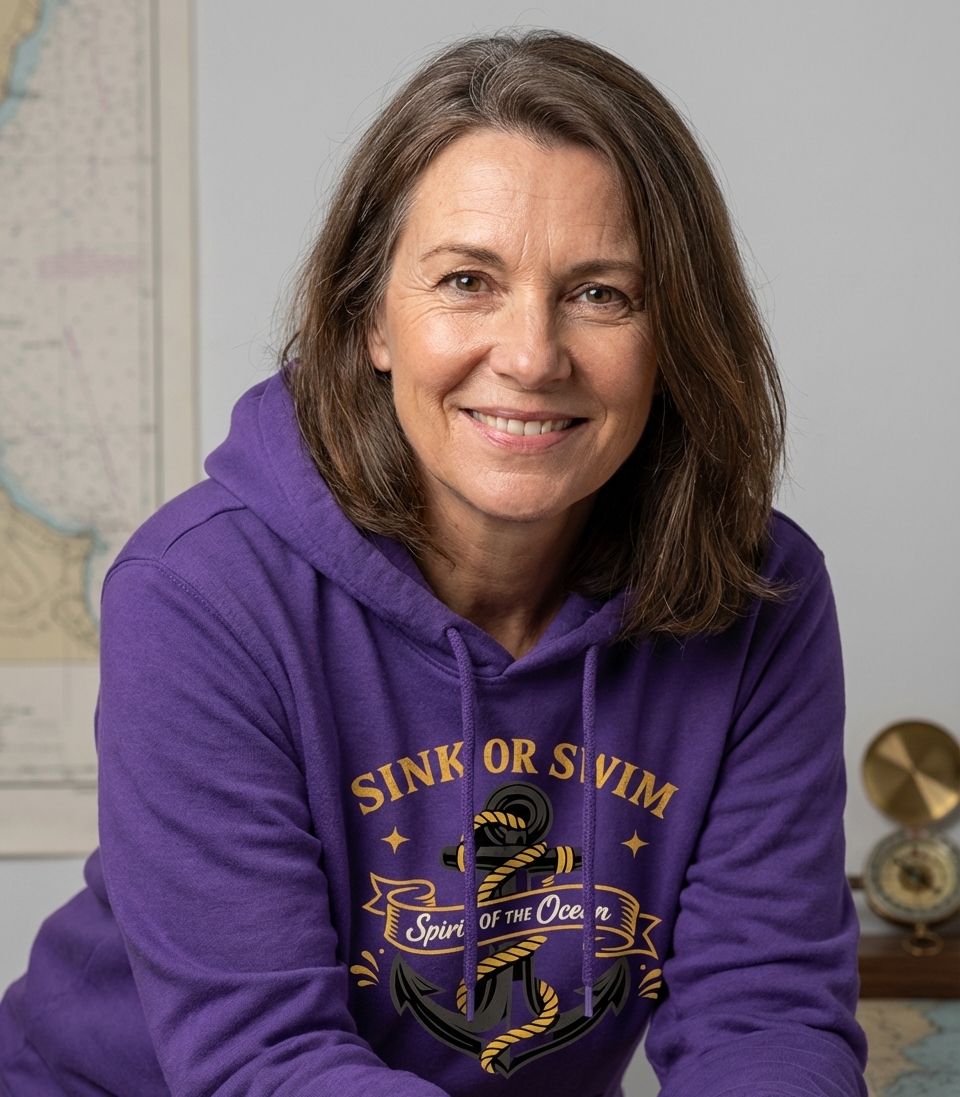 The 'Sink Or Swim' phrase captures the lifestyle of adventurous spirits who embrace challenges on the open water, navigate life's currents, and always push forward.