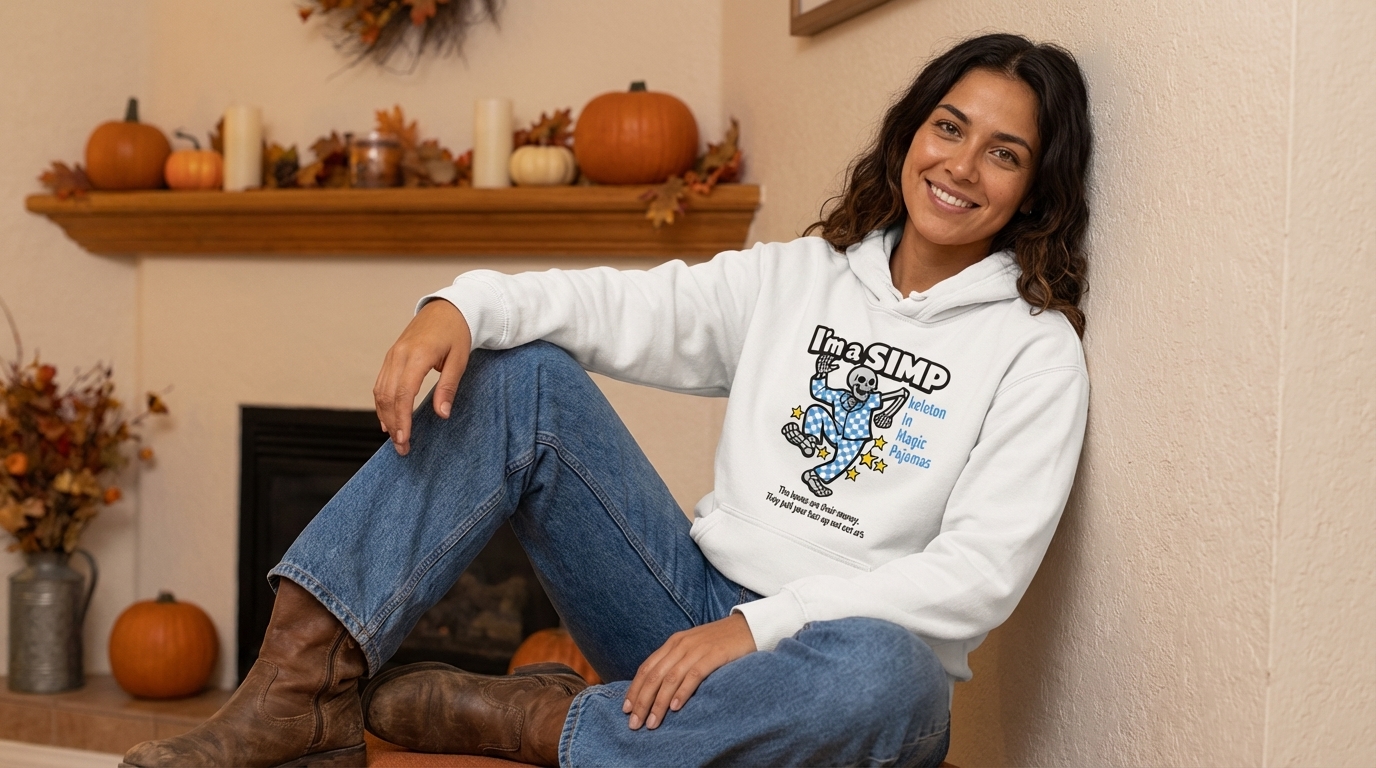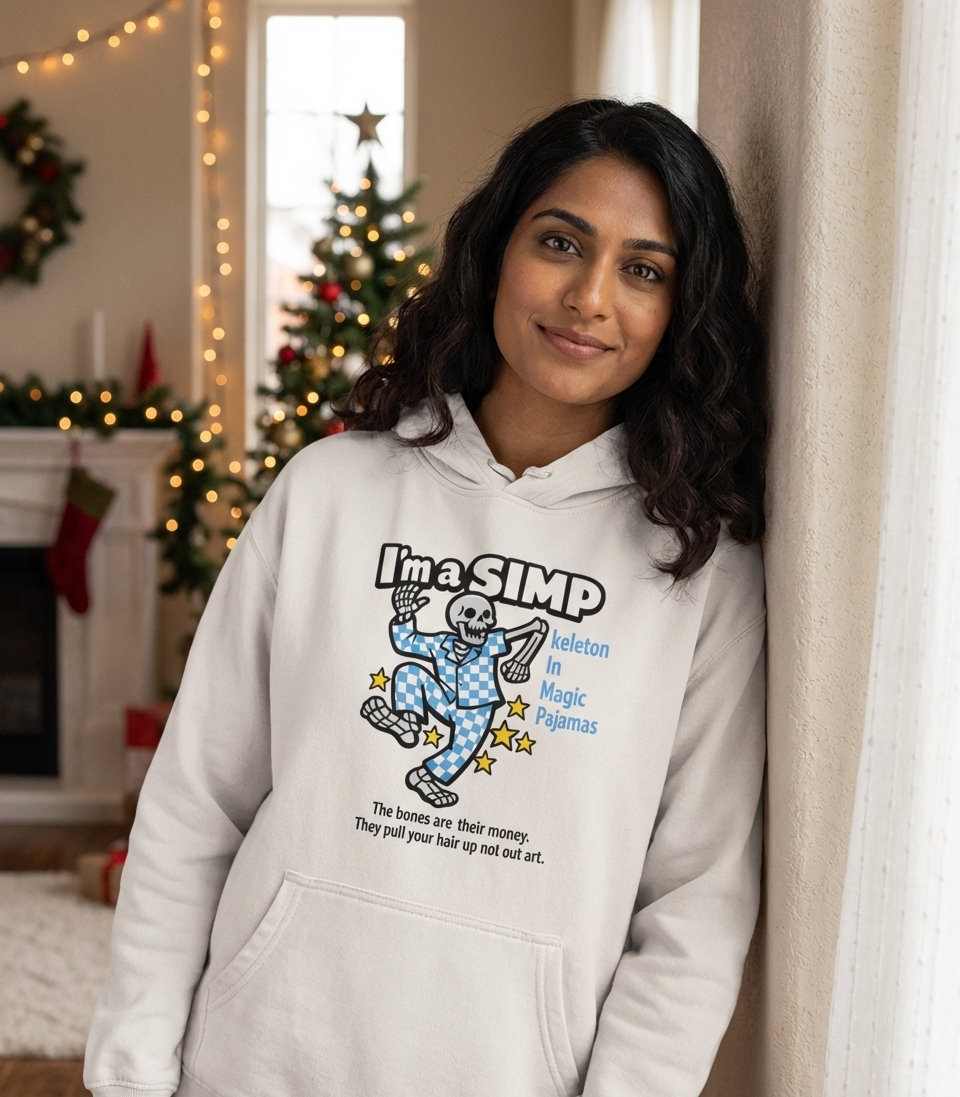 The 'Skeleton In Magic Pajamas' design captures the whimsical spirit of those who embrace playful spooky aesthetics and dream of dancing through starry nights.