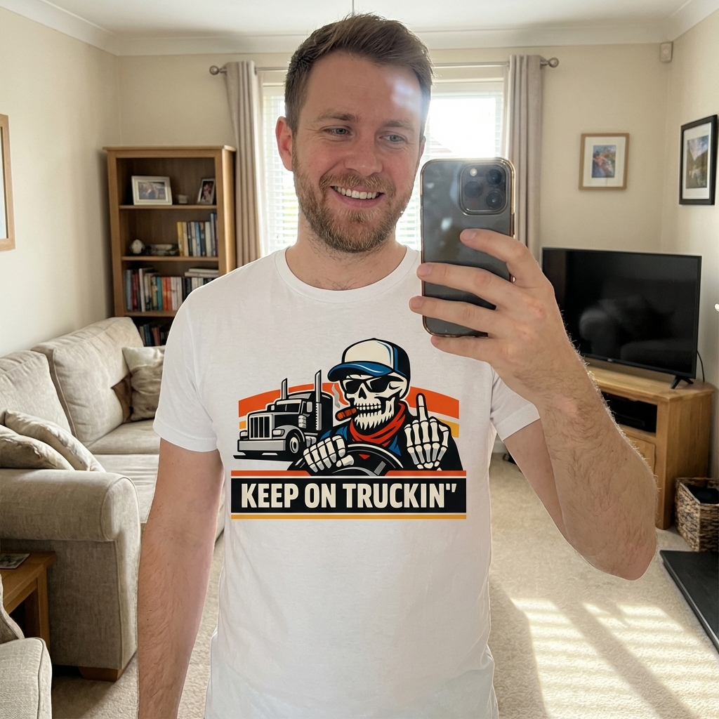 This 'Tough Trucker Skeleton' tee just arrived and I gotta say, it's awesome. The print is super crisp and the shirt itself is really soft, perfect for just chilling or whatever. Digging the vibe, definitely recommend!