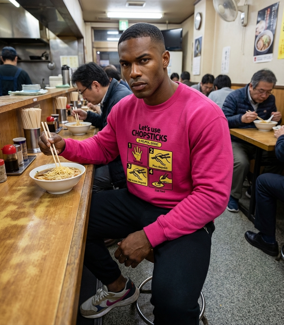 This humorous graphic features a four-panel "recipe" for instant noodles, demonstrating an unconventional approach to cooking. The design playfully illustrates a bizarre culinary method, suggesting a chef with a questionable palate might come up with such an odd concoction.