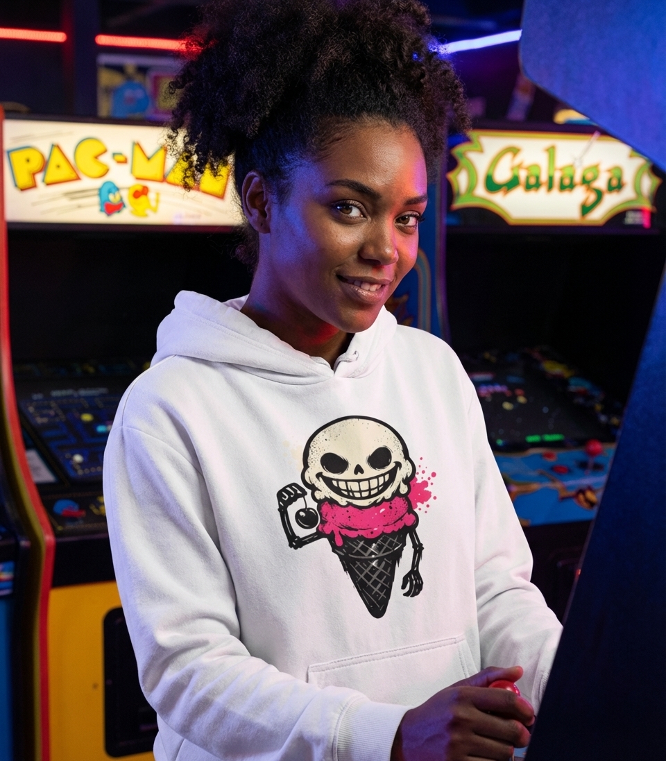 Yes! Check the style selector above to see all available options including hoodies and sweatshirts for the Skull Ice Cream Smile graphic.