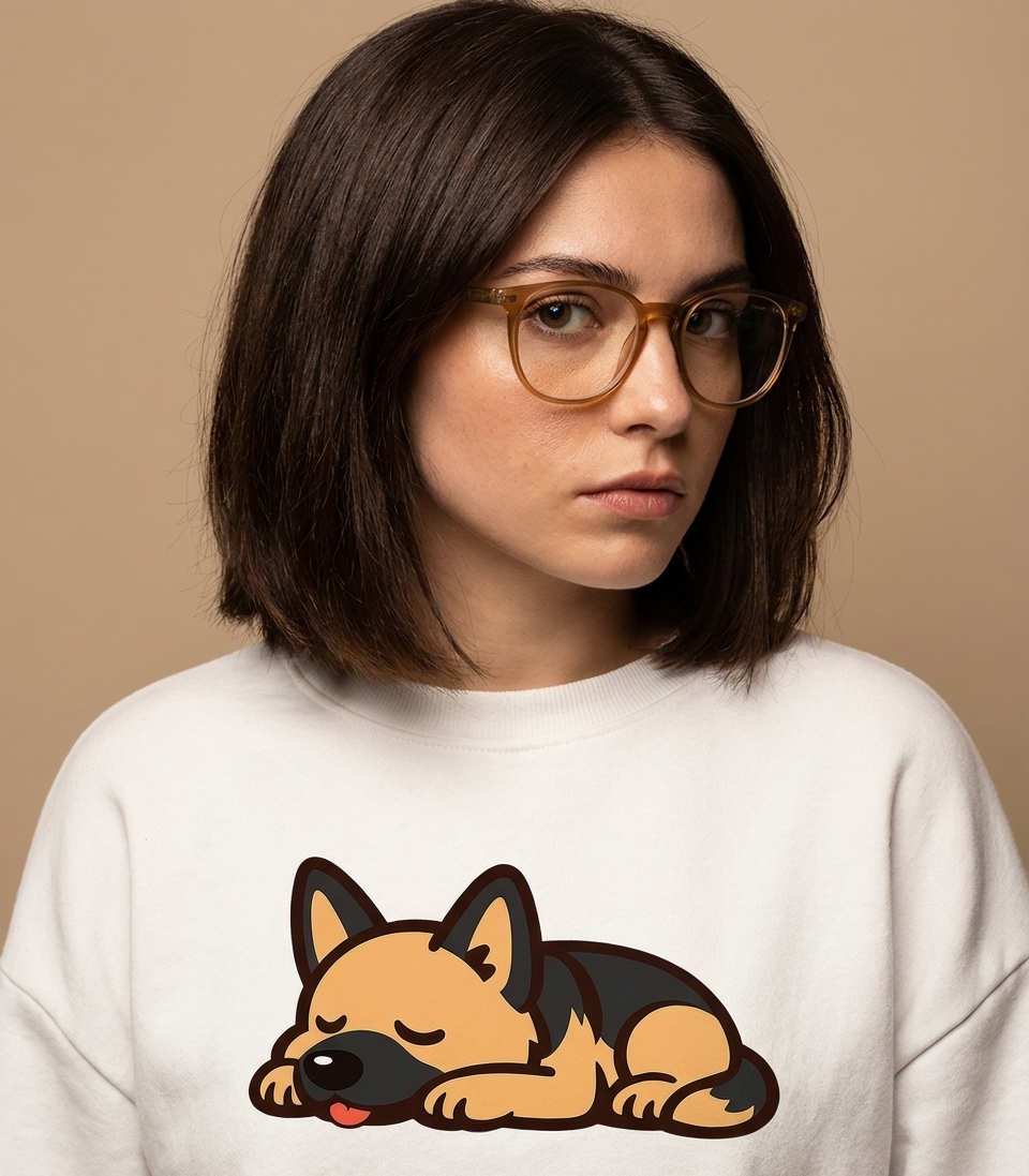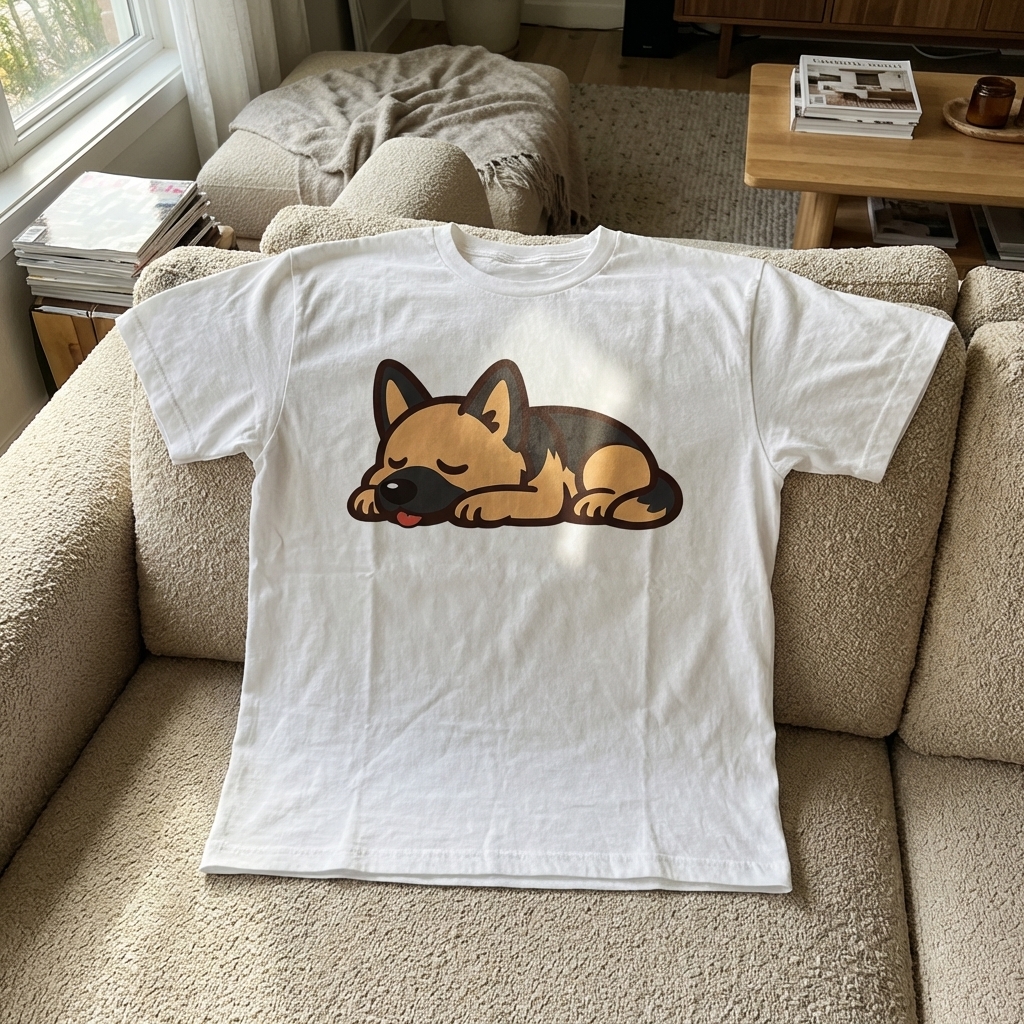 Got my shirt today and it's honestly great. The fabric is super soft and that sleeping German Shepherd design is really cool, not too much, kinda abstract which I dig. Perfect for just chilling.