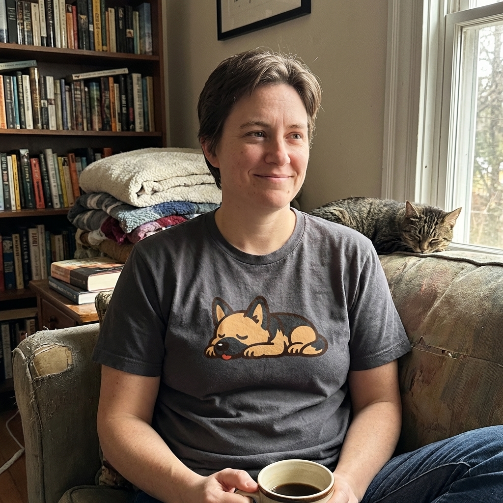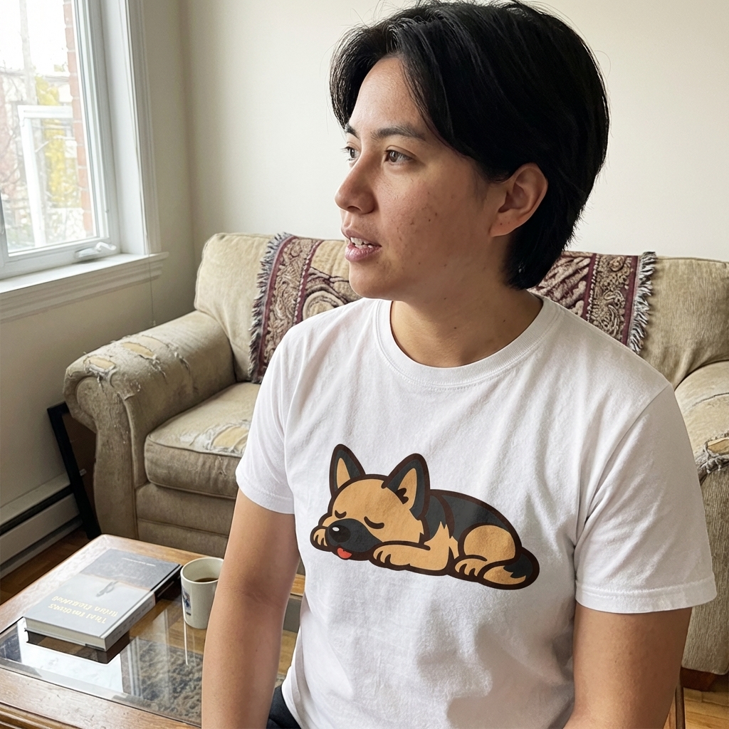 Got my 'sleeping german shepherd' tee today and it's pretty much perfect. The fabric feels really soft, and honestly, the abstract design has such a nice, chill vibe – exactly what I was hoping for.