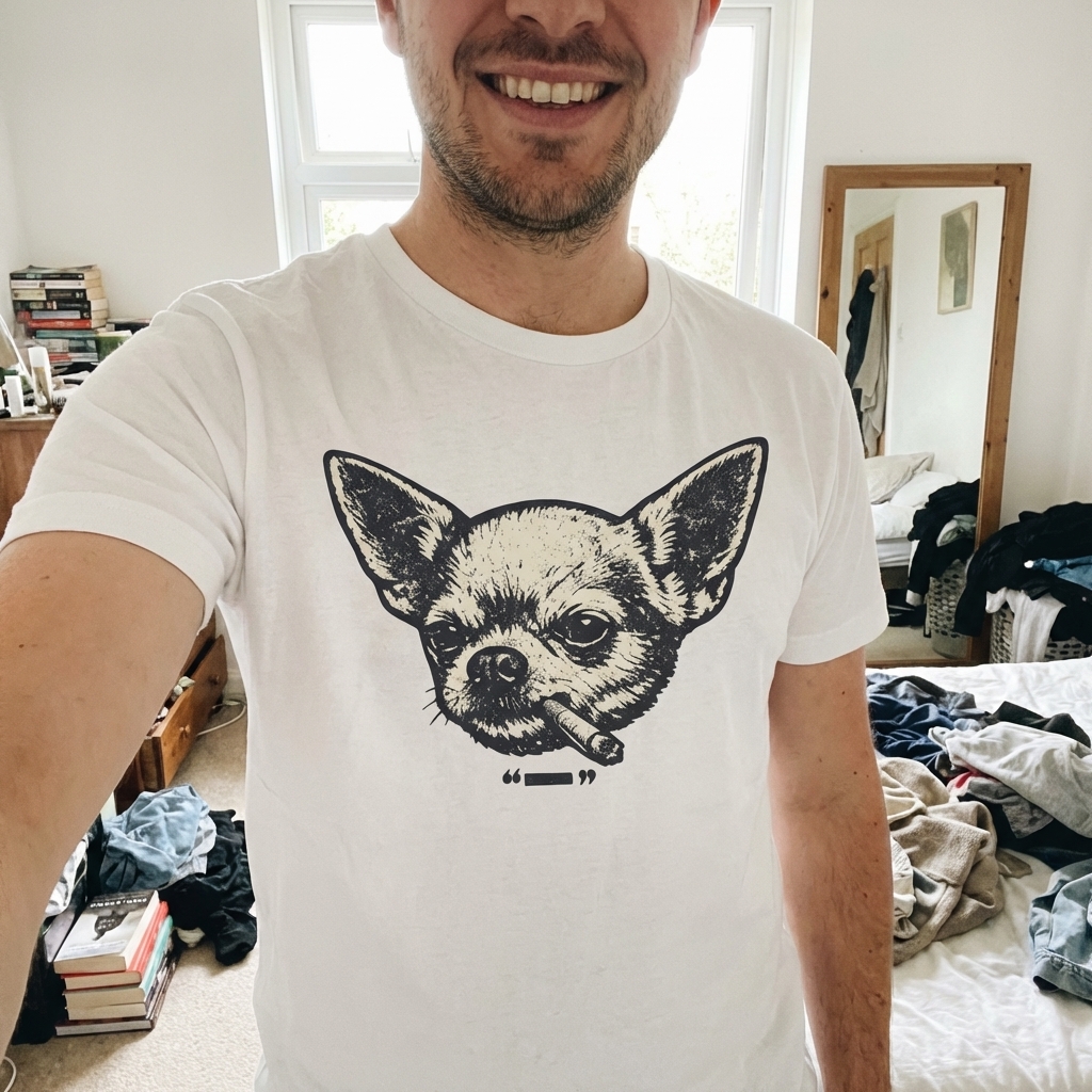 Got my smoking chihuahua tee today and it's even better than I thought. The print quality is solid and it's just got this really cool, slightly weird vibe that I love. totally happy with this purchase.
