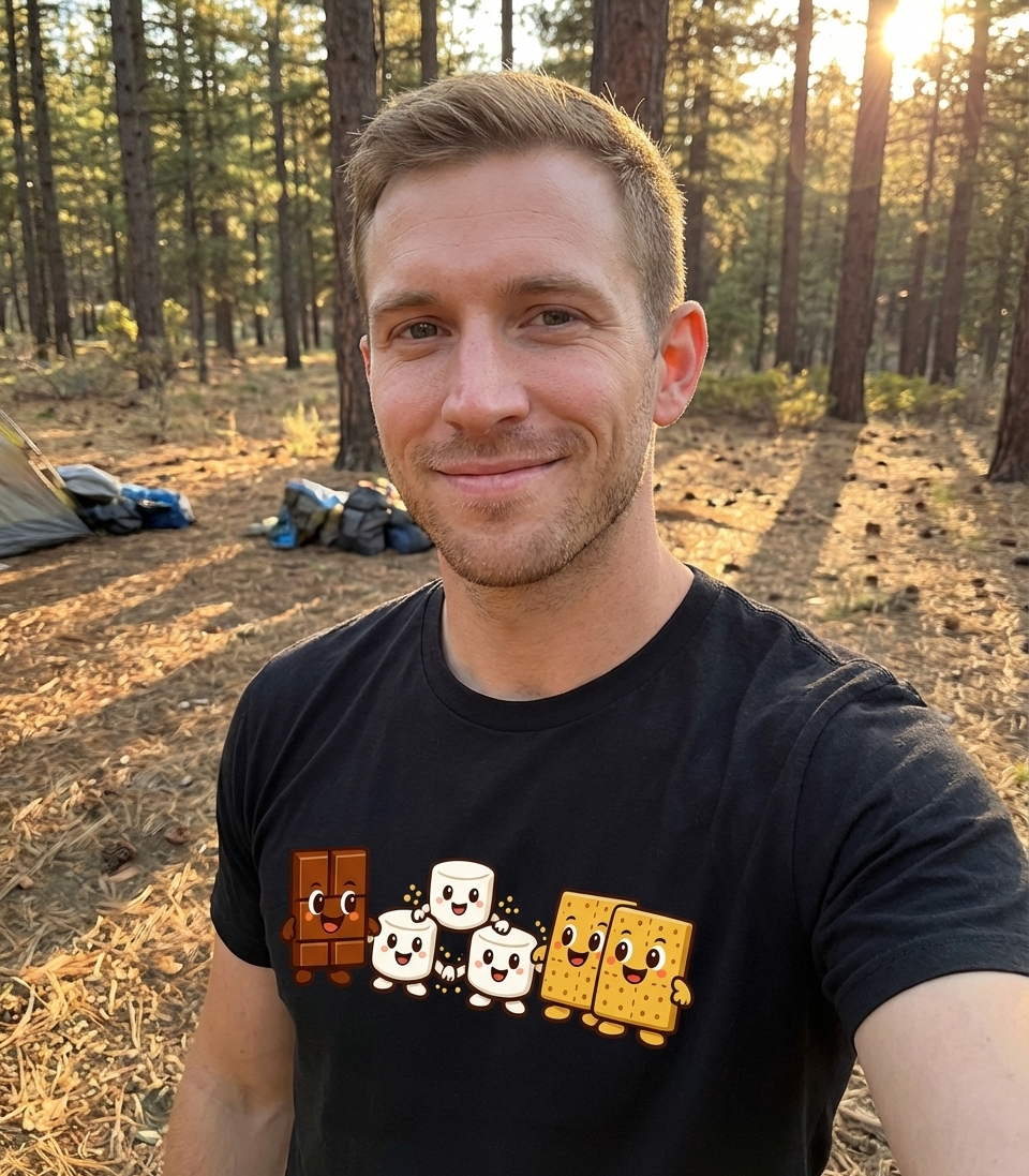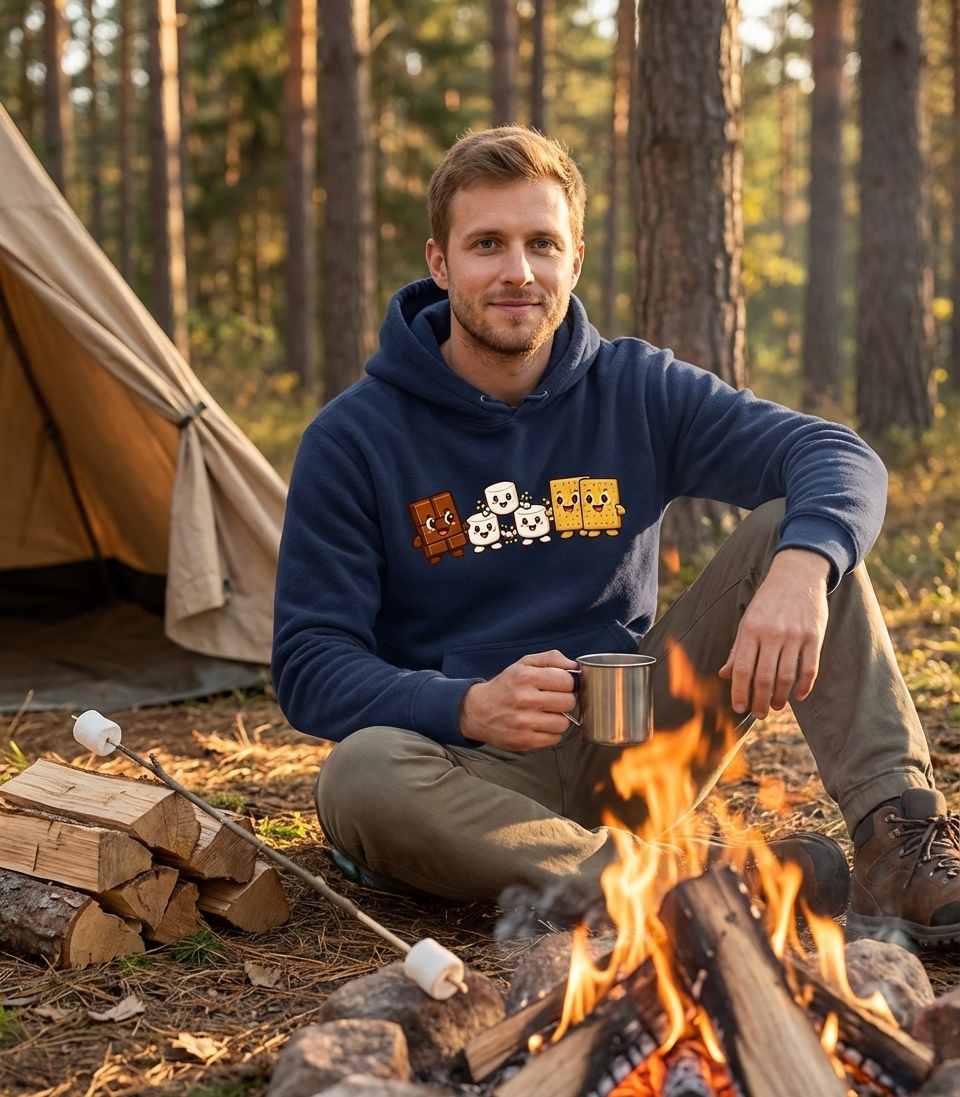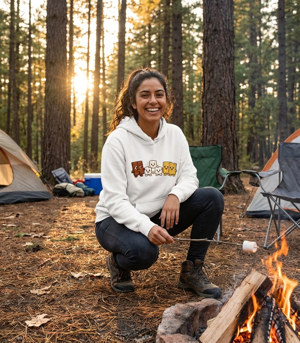 This delightful design captures the joyful spirit of s'mores enthusiasts who love to gather around a campfire, roast marshmallows, and enjoy sweet treats.