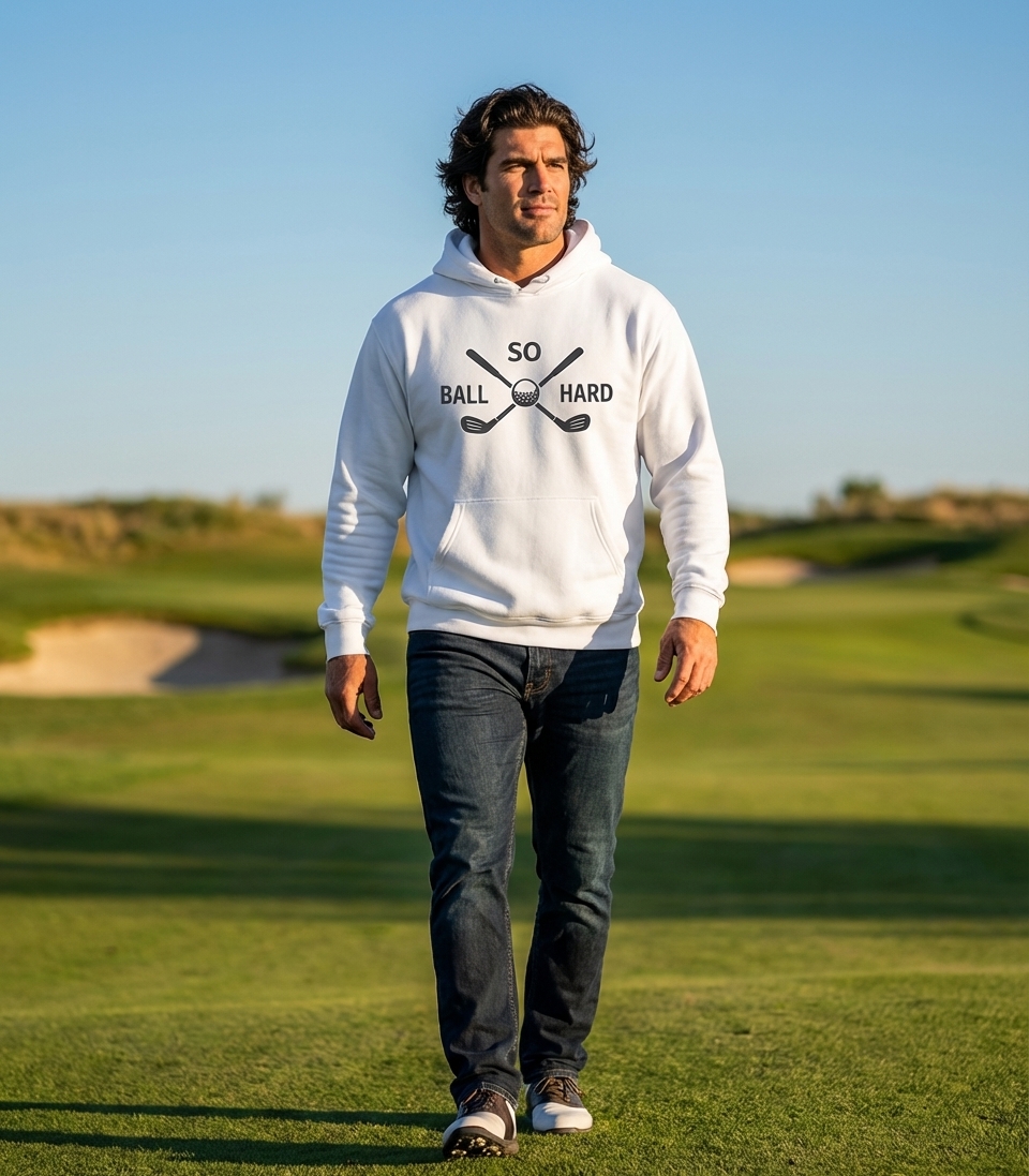 The 'So Ball Hard' phrase captures the lifestyle of passionate golfers who spend their days hitting the greens, perfecting their swing, and enjoying the game intensely.