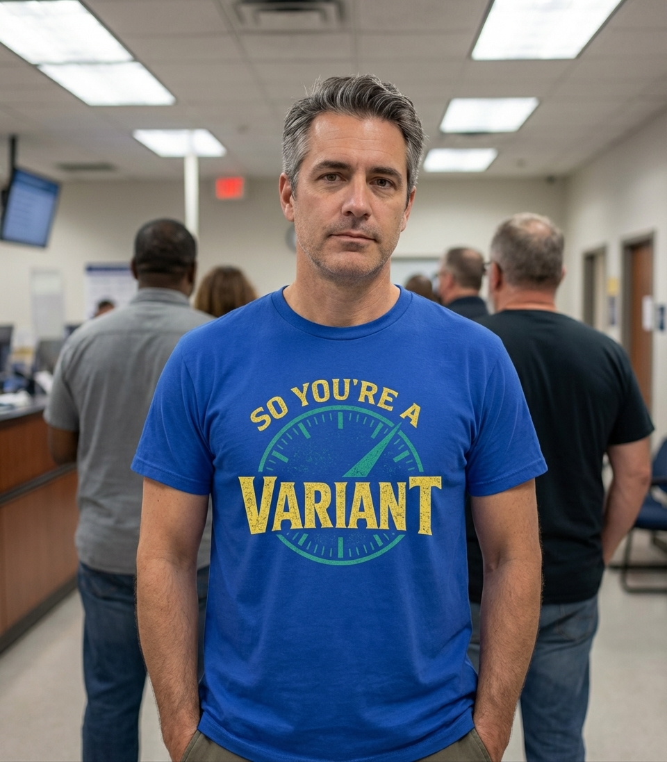 The phrase 'So You're A Variant' is a witty and sarcastic commentary on individuality and uniqueness. It playfully acknowledges someone who is different, stands out from the norm, or operates on their own distinct frequency. It can also be interpreted as a lighthearted nod to scientific or statistical 'variants' in a humorous, self-aware way.
