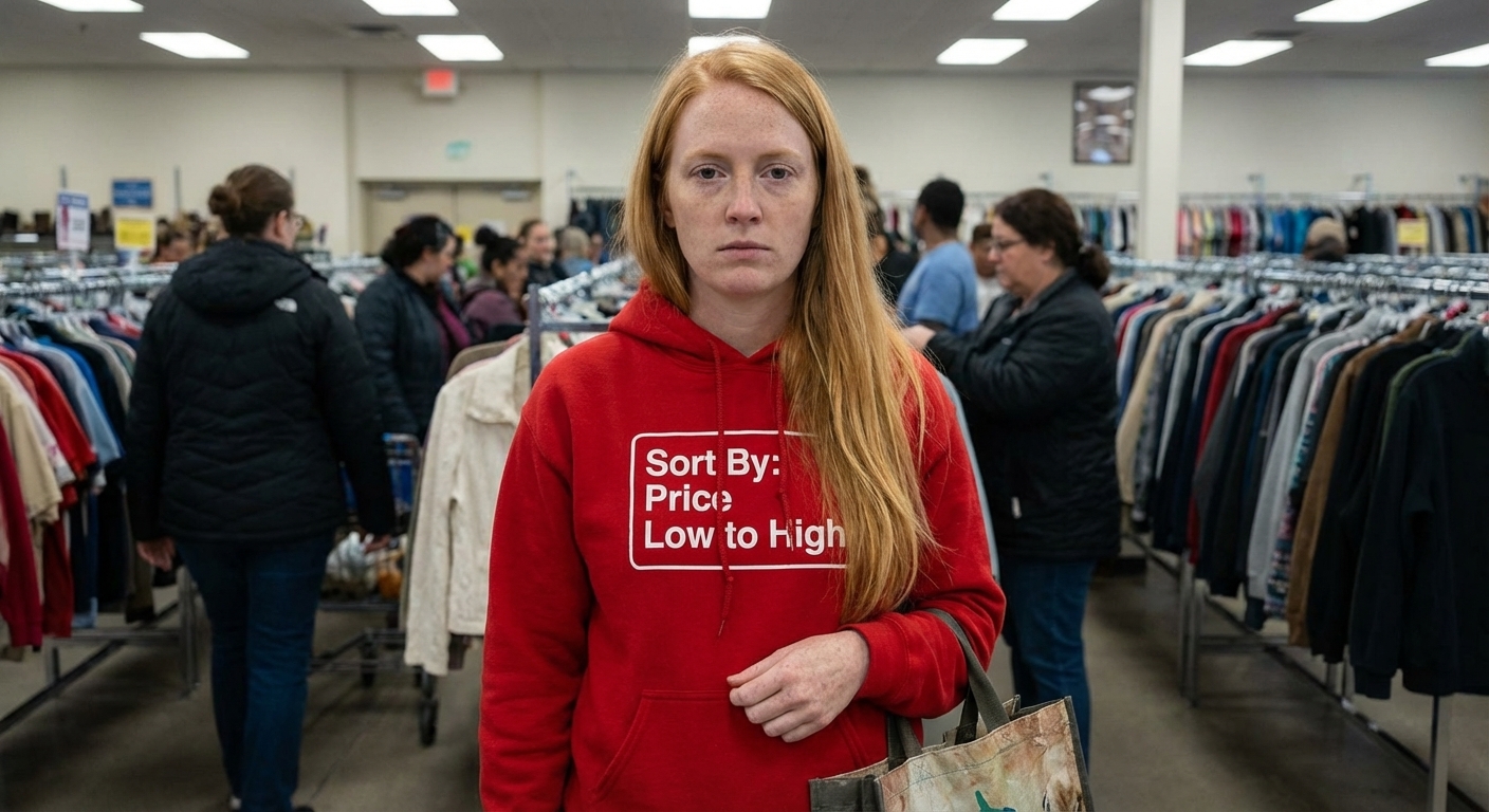 The 'Sort By: Price Low to High' phrase humorously reflects a universal approach to prioritizing value, resonating with savvy shoppers and those who appreciate straightforward efficiency.