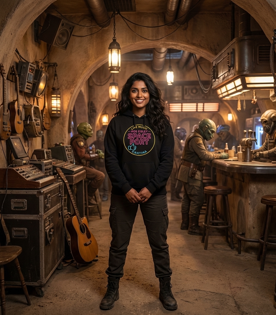 Yes! Check the style selector above to see all available options including hoodies and sweatshirts for the Spaceport Cantina Live Music graphic.