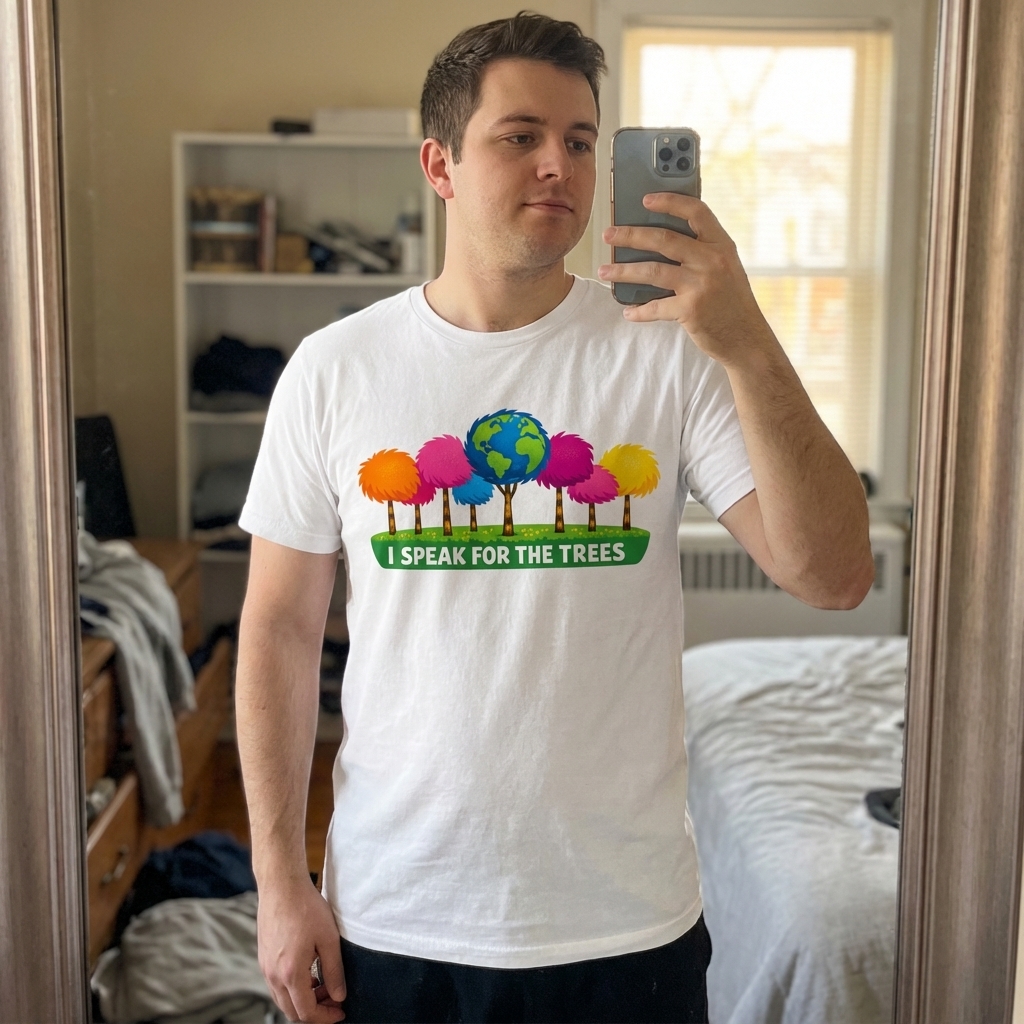 Got my "Speak For The Trees" shirt today and wow, the design is even better in person – really digging those abstract nature vibes. it's also super comfy; definitely gonna be a staple in my casual rotation.