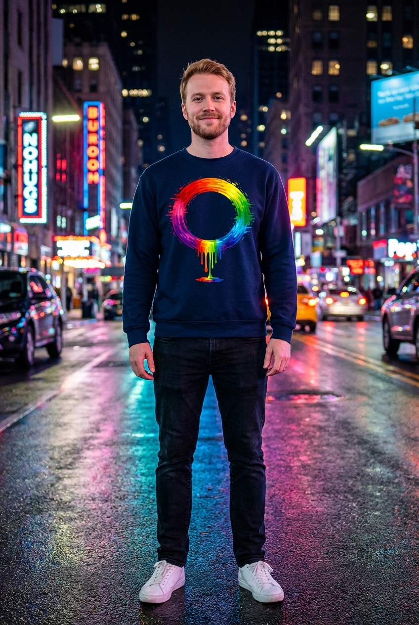 While not containing a specific phrase, the design embodies themes of diversity, creativity, and the fluidity of identity. The rainbow spectrum is a widely recognized symbol of pride and inclusivity. The artistic style encourages personal expression and embracing uniqueness.