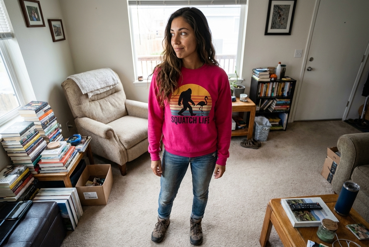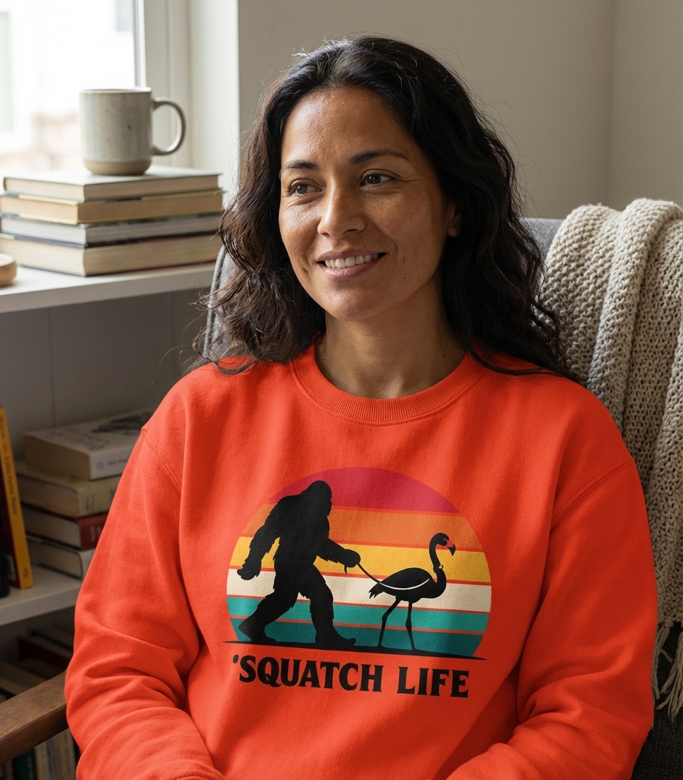 The "Squatch Life" phrase captures the lifestyle of quirky cryptid enthusiasts who enjoy mythical creatures, unexpected pairings, and unique humor.