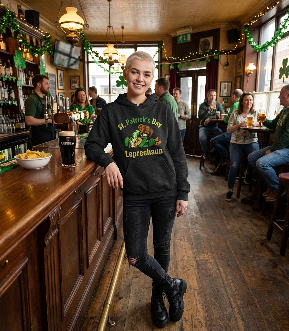 Yes! Check the style selector above to see all available options including hoodies and sweatshirts for the St. Patrick's Day Leprechaun graphic.