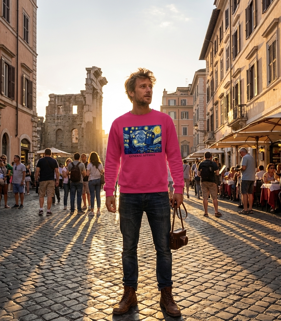 This iconic mashup design captures the imagination of sci-fi enthusiasts who appreciate classic art, time-travel adventures, and quirky British television.