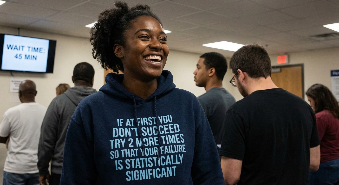 This design presents a humorous take on the traditional motivational quote, adding a clever, academic twist. It plays on the concept of statistical significance, applying it to repeated failures in a witty and self-deprecating manner.