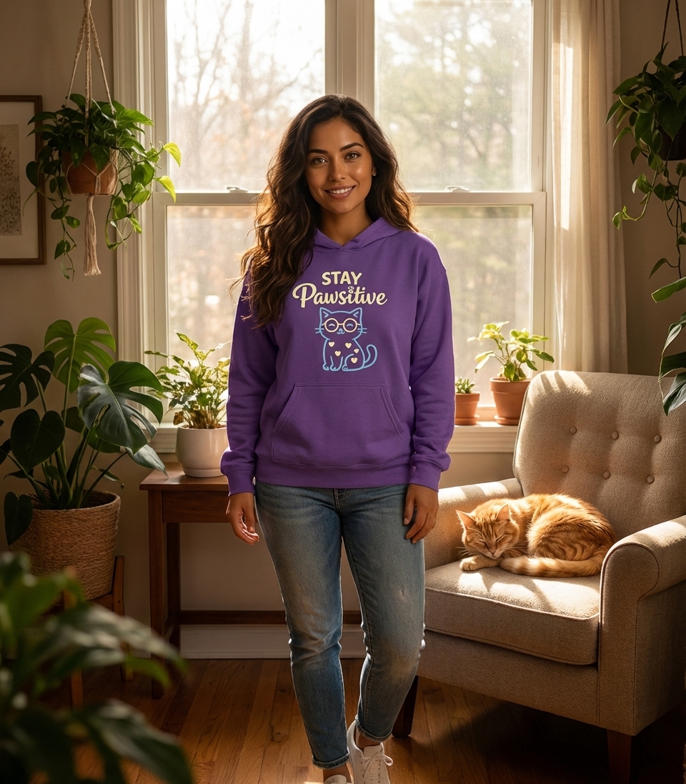 Yes! Check the style selector above to see all available options including hoodies and sweatshirts for the Stay Pawsitive Cat graphic.