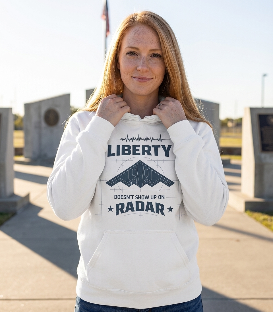 This design captures the spirit of patriotic Americans who value freedom, appreciate military strength, and understand the concept of stealth technology.
