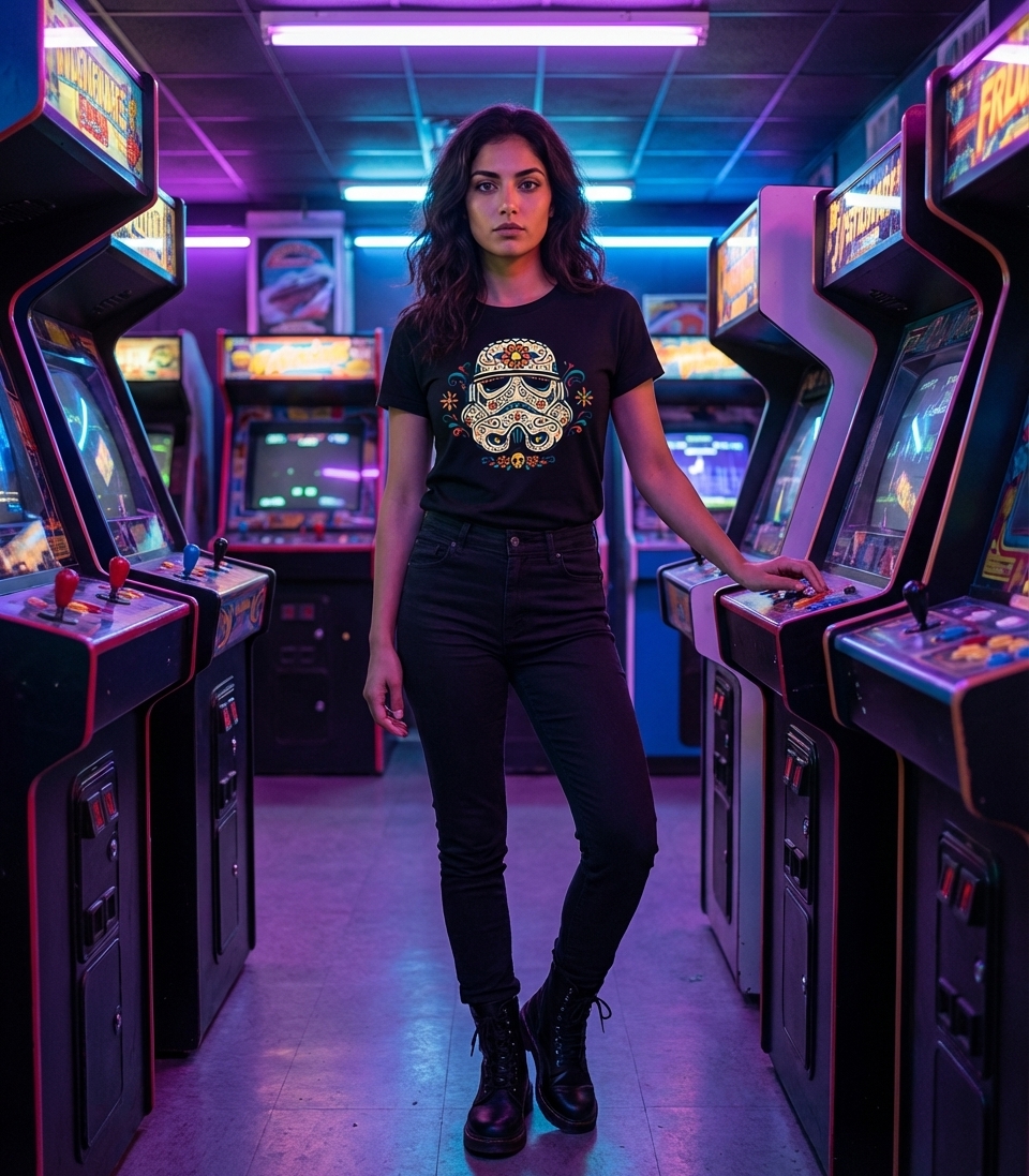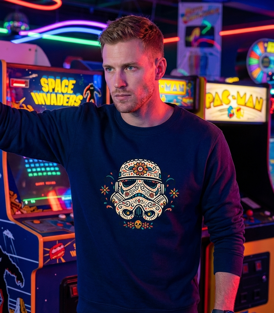 The 'Sugar Skull Trooper' represents a creative blend of two distinct cultural realms: the futuristic militarism of Star Wars and the colorful commemoration of Día de Muertos. It signifies an appreciation for unique artistic interpretations and the unexpected harmony found in combining diverse themes.