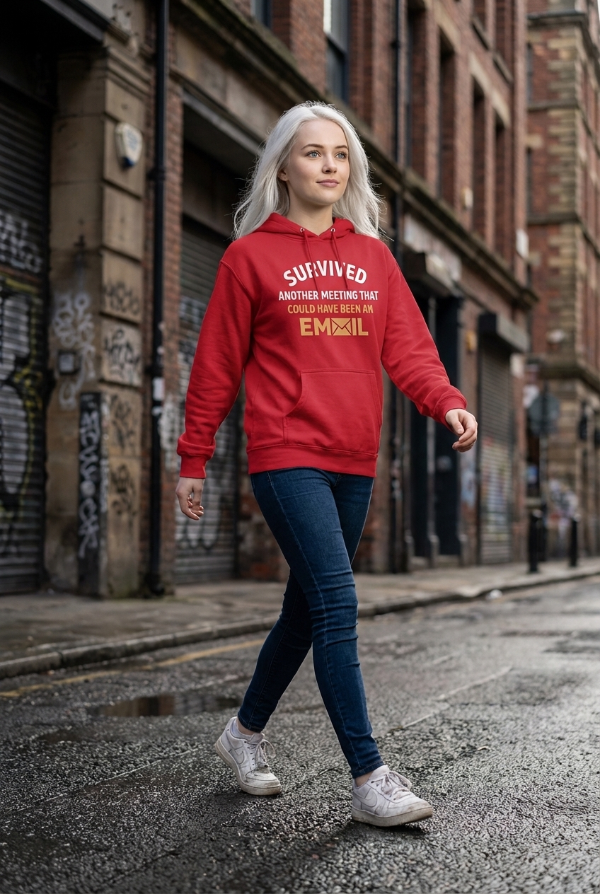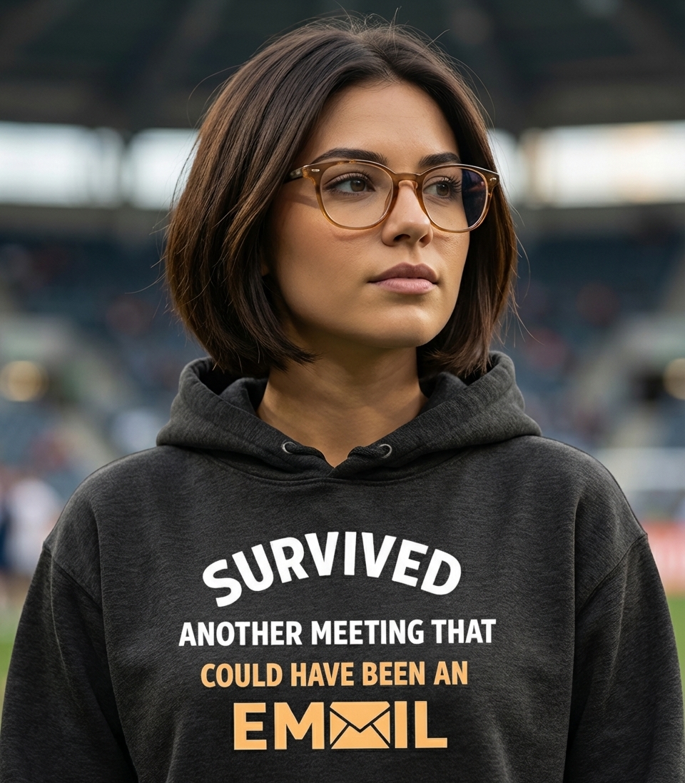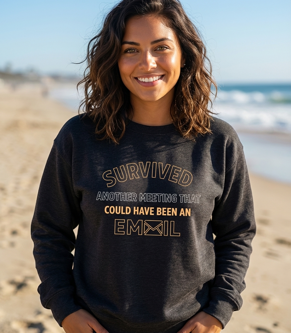 The 'Survived Another Meeting That Could Have Been An Email' phrase captures the shared frustration of office workers who navigate endless virtual calls, dread packed calendars, and value efficient communication.