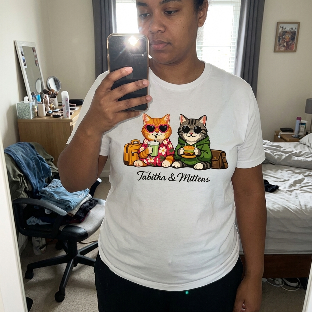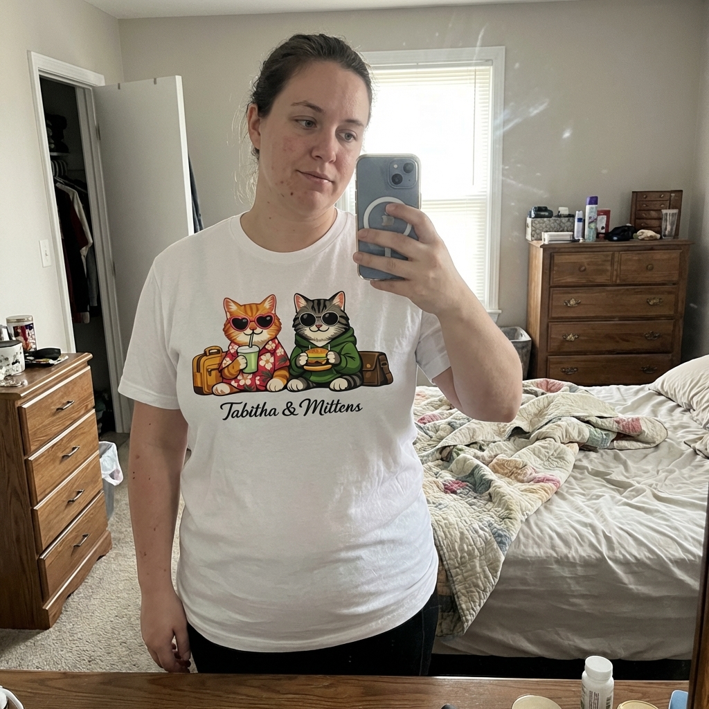Okay, this tee is seriously awesome. The "Tabitha & Mittens" design is exactly what I was hoping for, super unique and just *different* in a good way, you know? Plus, it's really soft, perfect for my everyday kinda vibe.