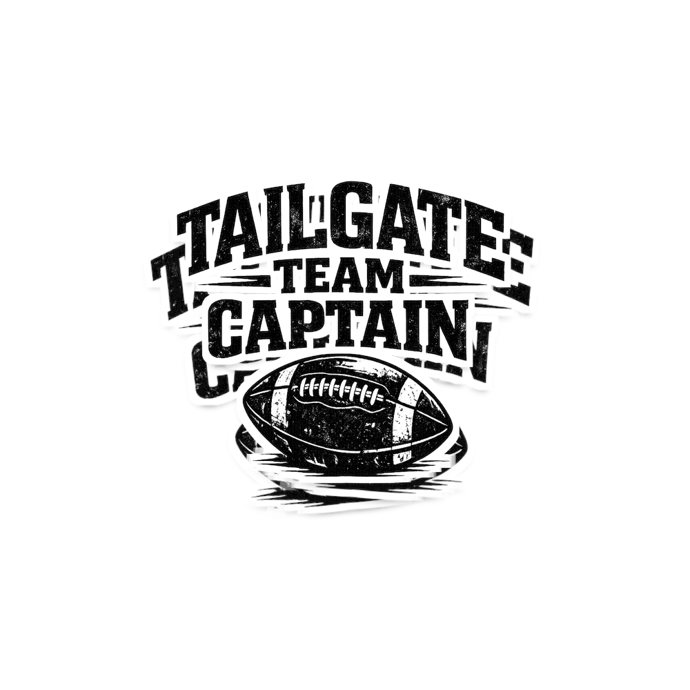 This design celebrates the essential role of the Tailgate Captain during football season. It features a bold, distressed text graphic above a classic American football illustration. The artwork captures the festive and communal spirit of pre-game gatherings.