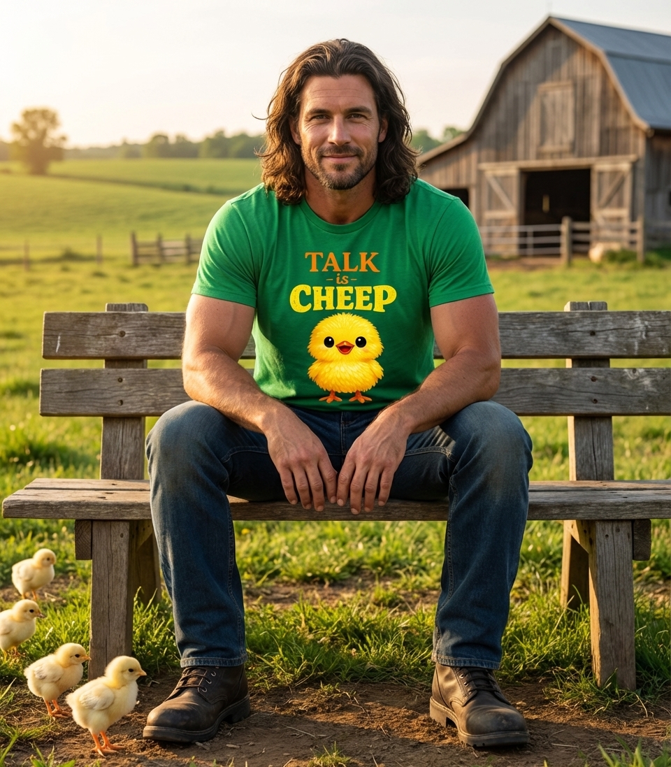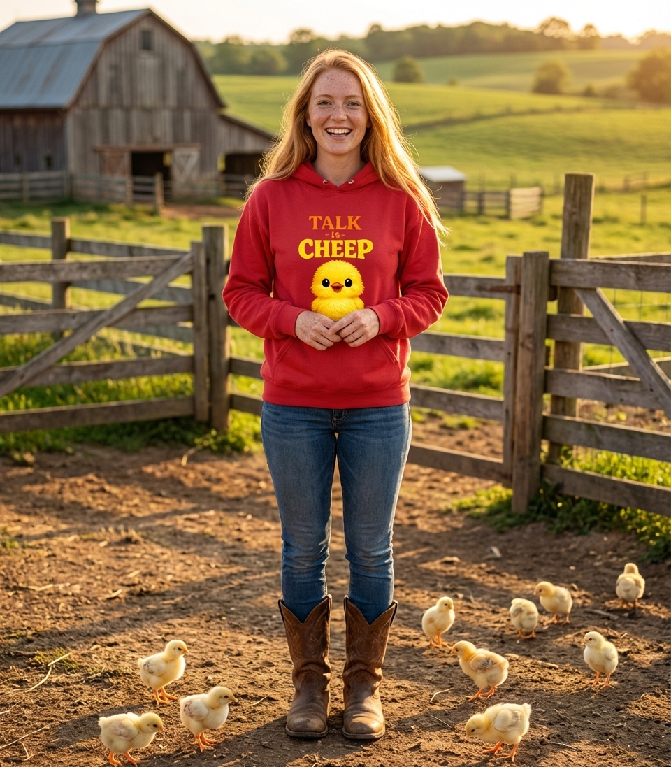 The "Talk Is Cheep" phrase playfully captures the lighthearted spirit of those who enjoy wordplay and the charm of farm animals.