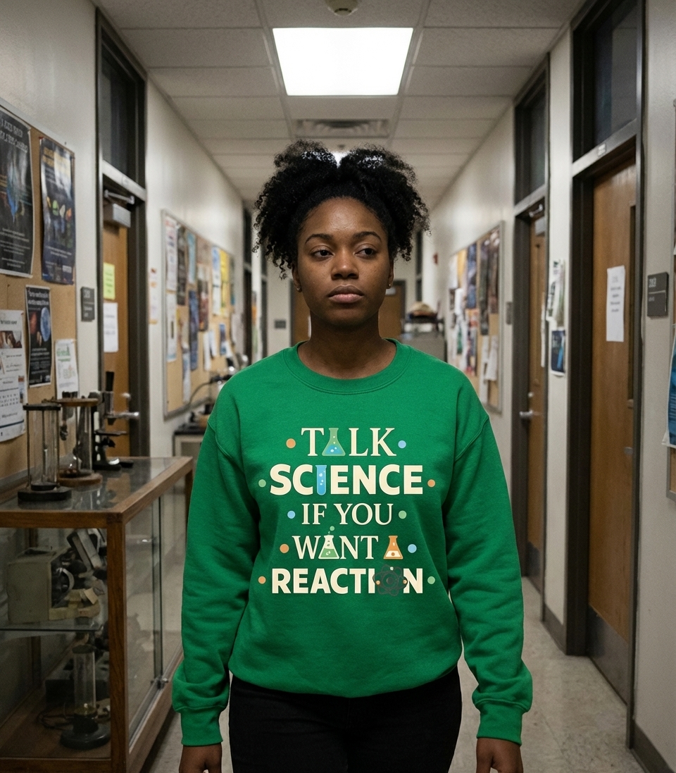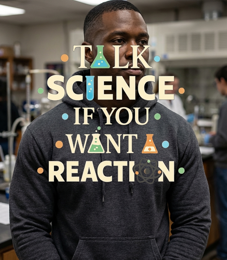 The 'Talk Science Get Reaction' phrase captures the witty lifestyle of passionate scientists and students who enjoy clever puns, laboratory work, and sparking intellectual discussions.