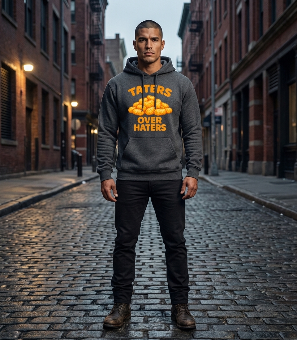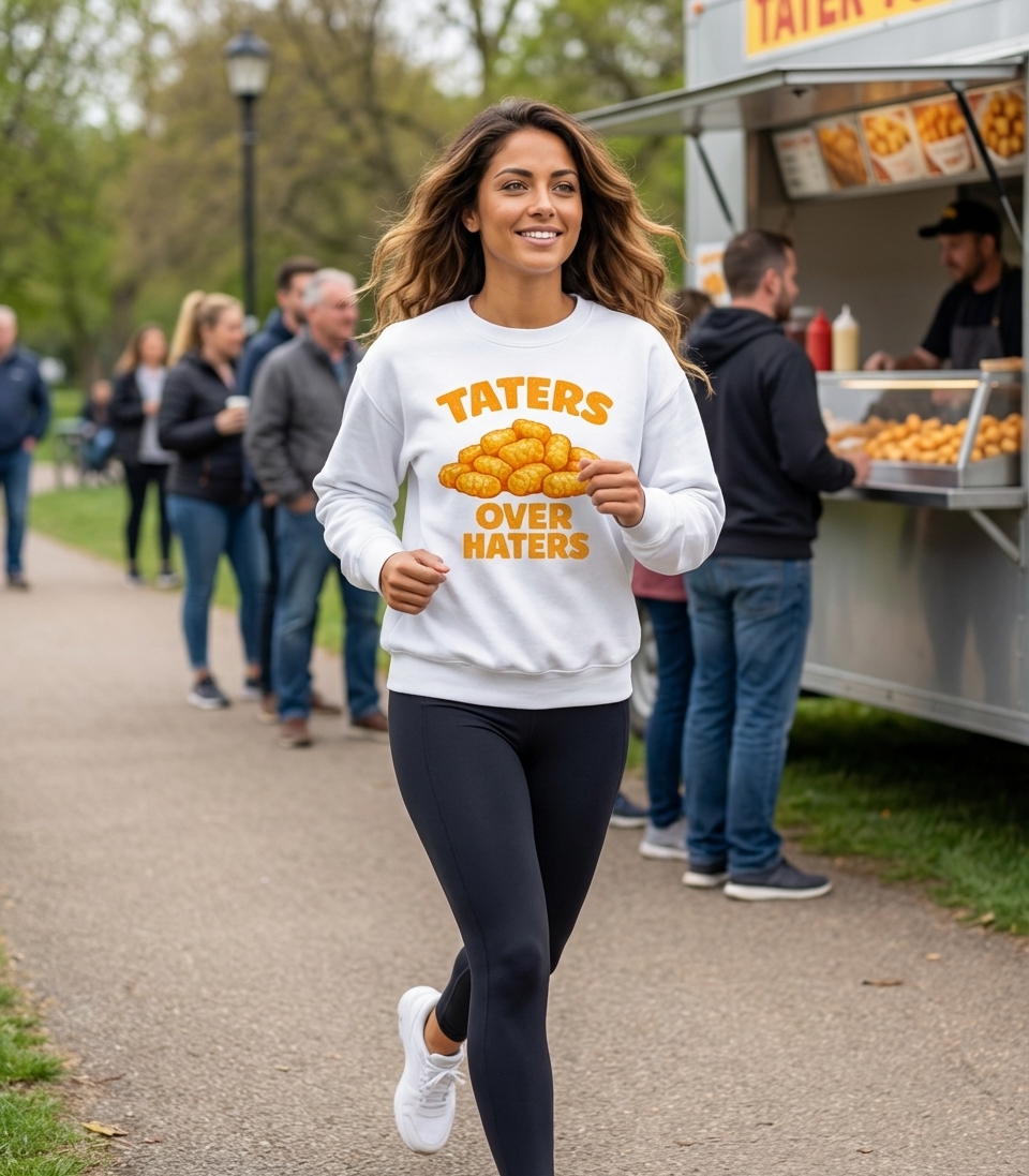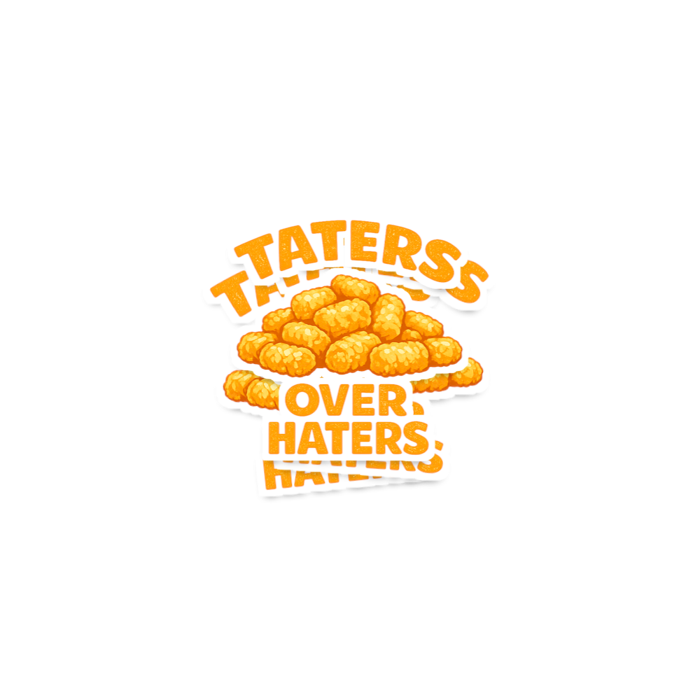 The "Taters Over Haters" phrase captures the lifestyle of witty food lovers who enjoy a good pun, embrace positivity, and playfully dismiss negativity.