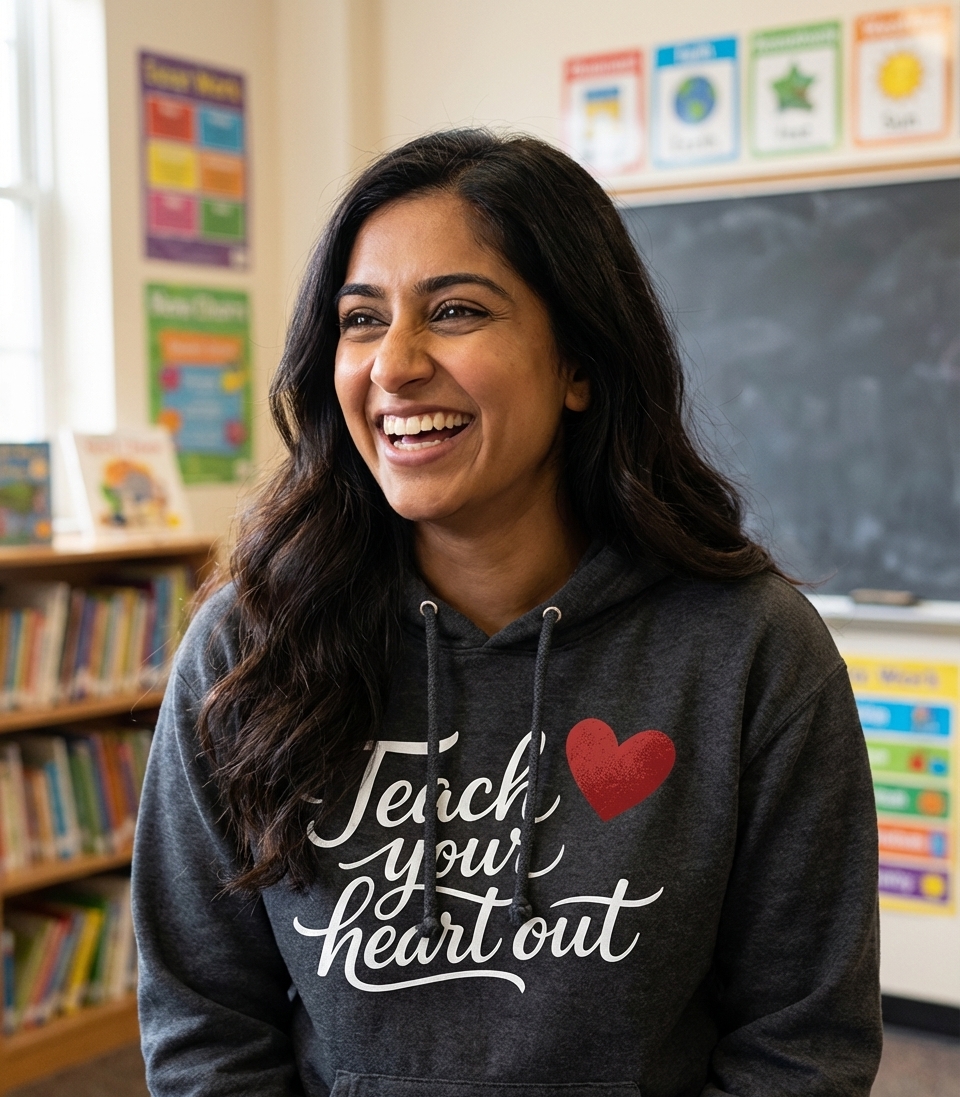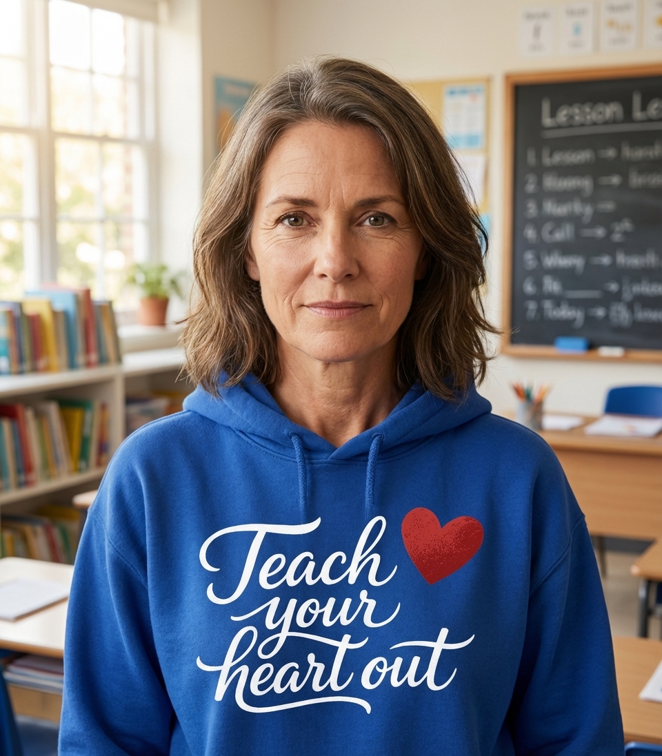 The 'Teach Your Heart Out' phrase captures the dedication of passionate educators who inspire students and foster a love for learning every day.